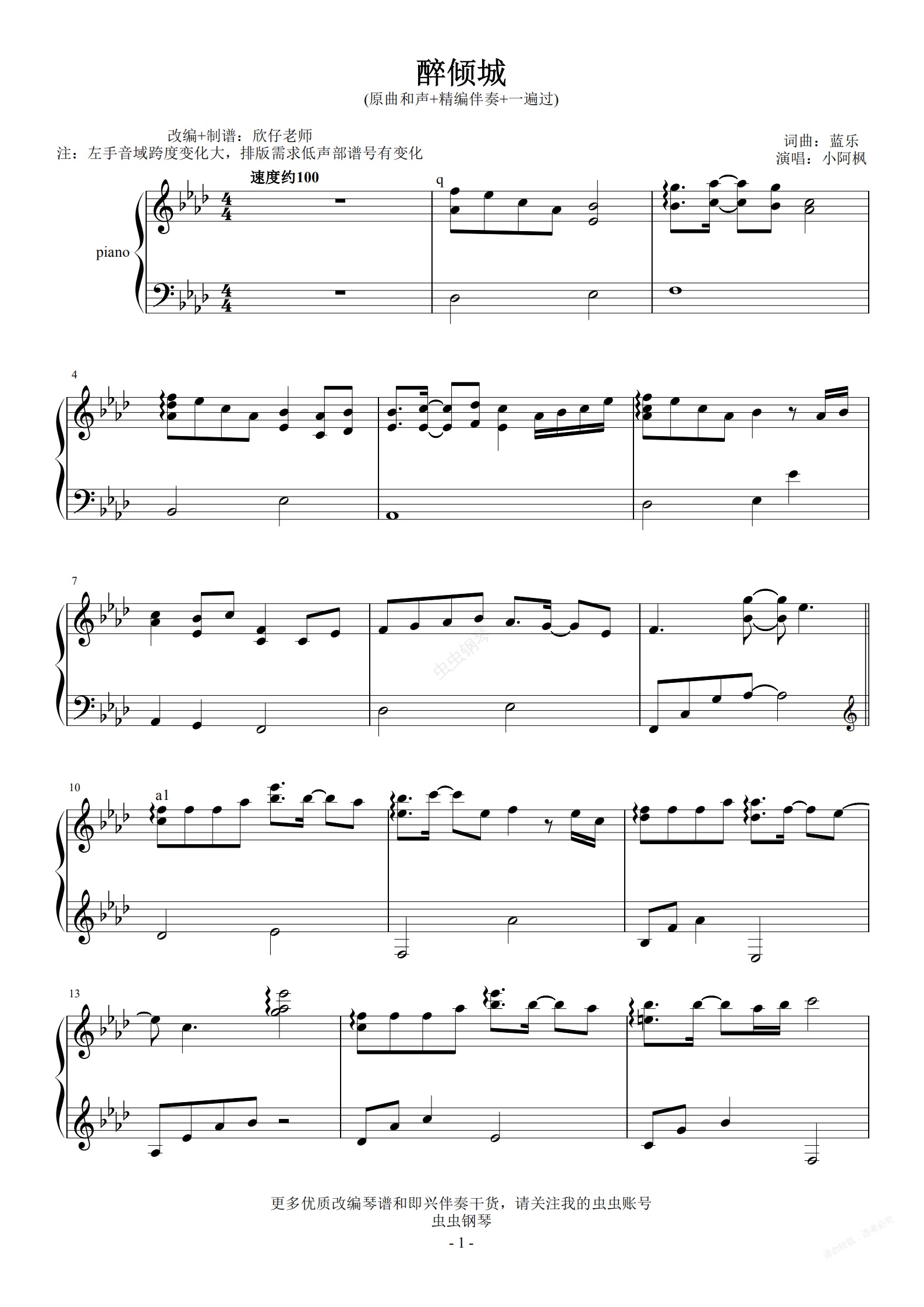 钢琴谱:醉倾城-bA(原曲和声+精编伴奏+一遍过)