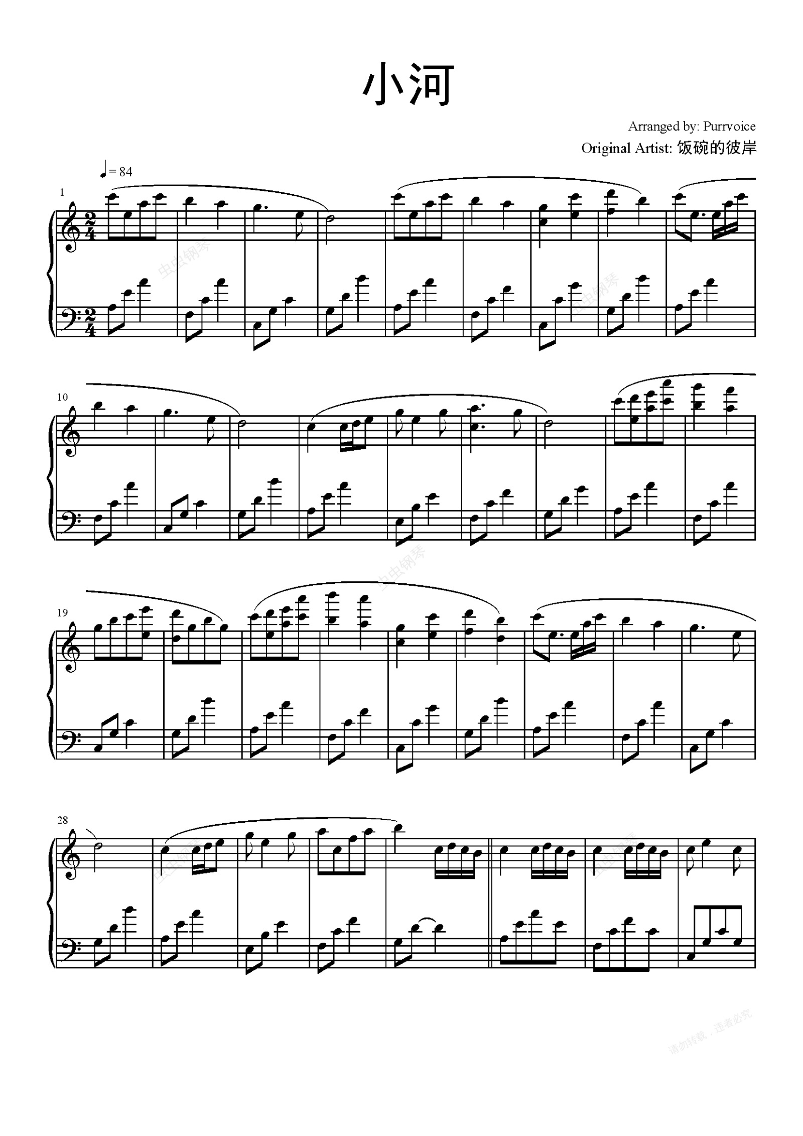 钢琴谱:【Purrvoice】小河-饭碗的彼岸