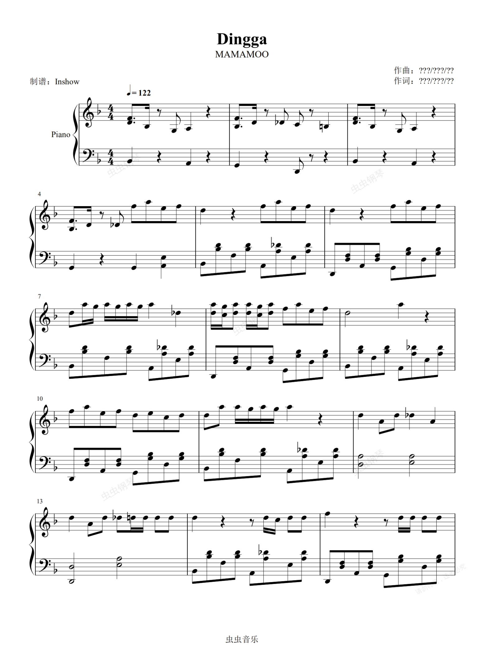 钢琴谱:Dingga【独奏】- MAMAMOO -