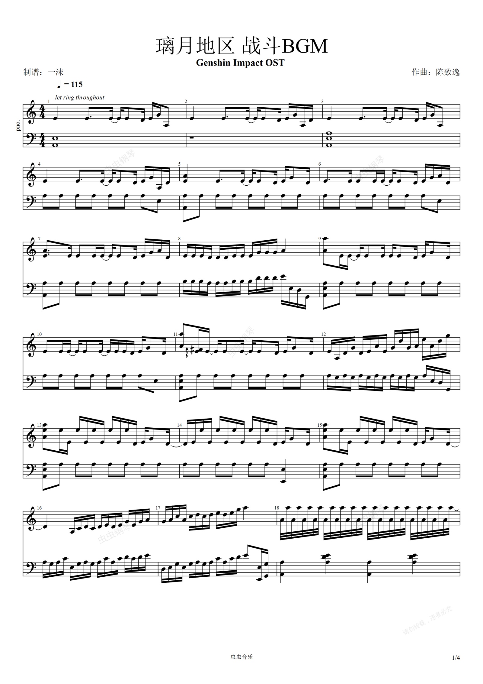 钢琴谱:原神-璃月地区 战斗BGM 钢琴独奏 疾如猛火