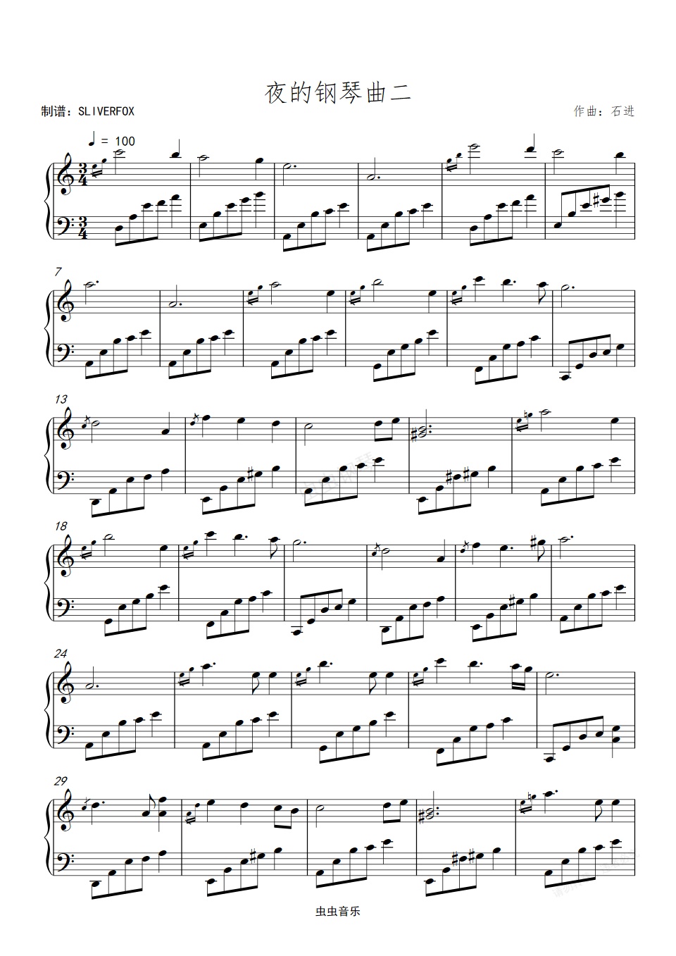 钢琴谱:夜的钢琴曲二 C调