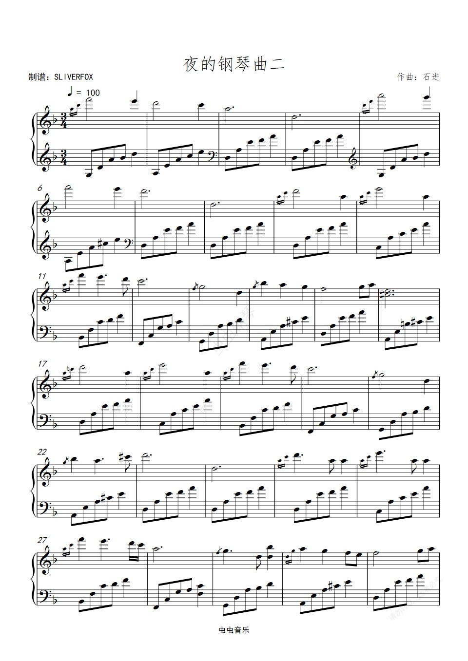 钢琴谱:夜的钢琴曲二 F调