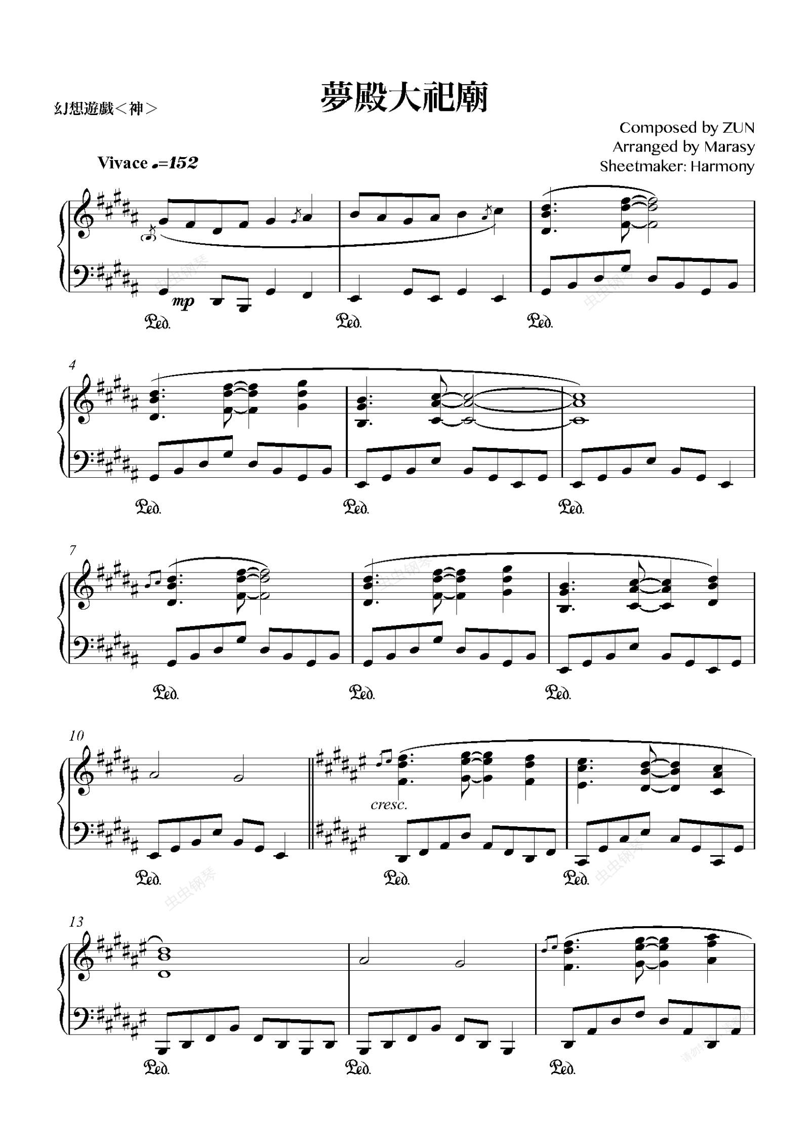 钢琴谱:【东方神灵庙】【触手猴】梦殿大祀庙(夢殿大祀廟)