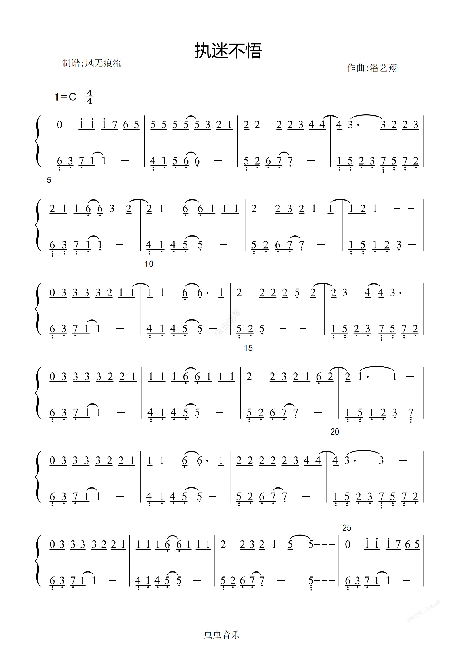 钢琴谱:执迷不悟-铁脑袋〖数字简谱〗