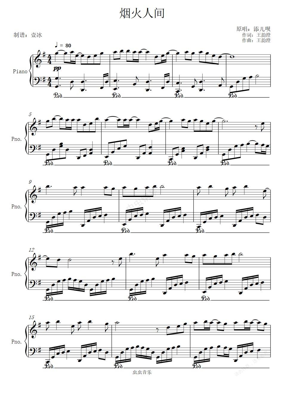 钢琴谱:烟火人间//添儿呗-壹冰钢琴版