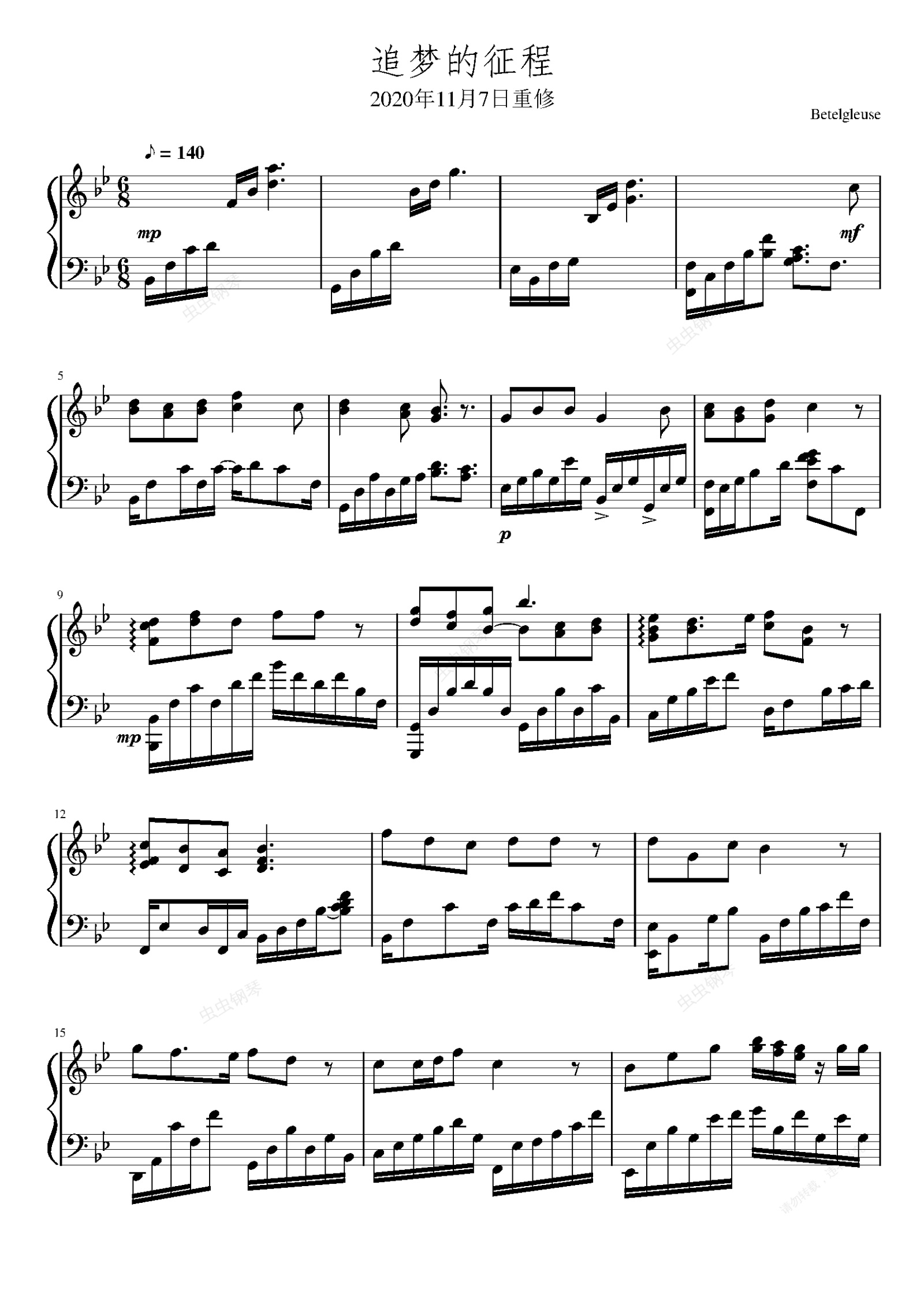 钢琴谱:追梦的征程【2020重制钢琴独奏】