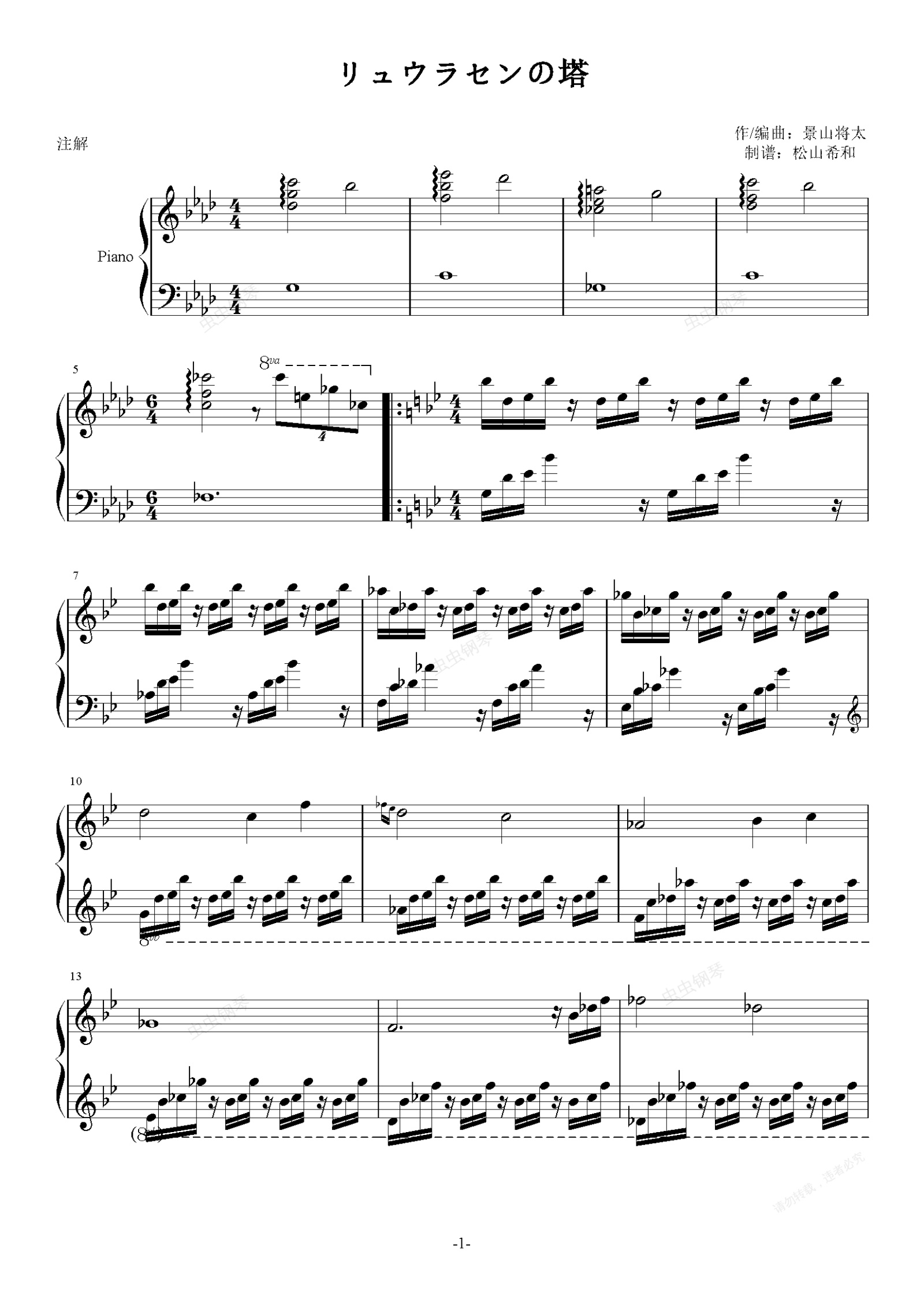 钢琴谱:リュウラセンの塔(口袋妖怪BW_龙螺旋之塔)
