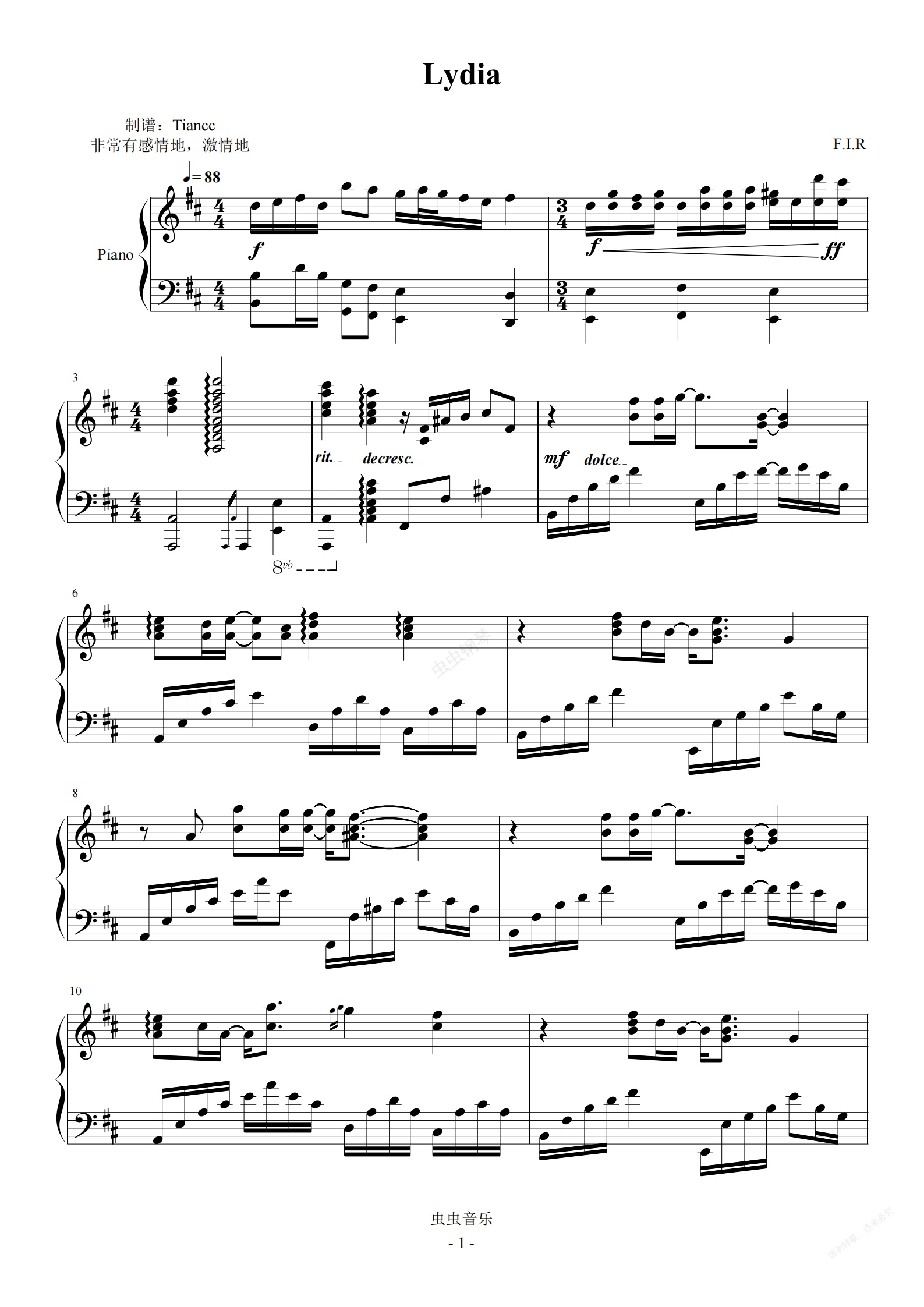 钢琴谱:《Lydia》完美可弹谱!演奏级改编飞儿乐队神曲
