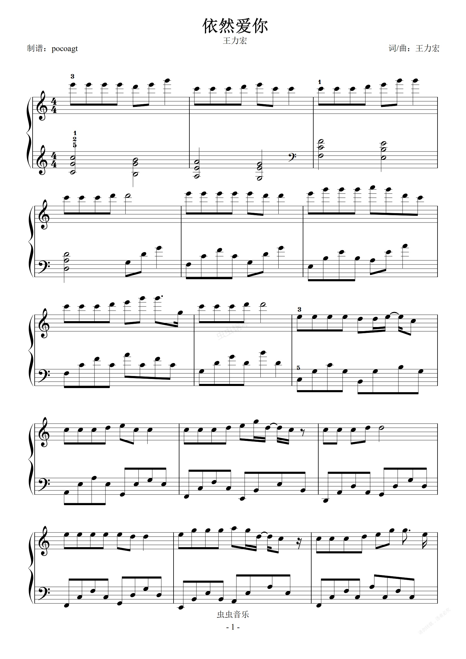 钢琴谱:《依然爱你》初学者版(poc编配)