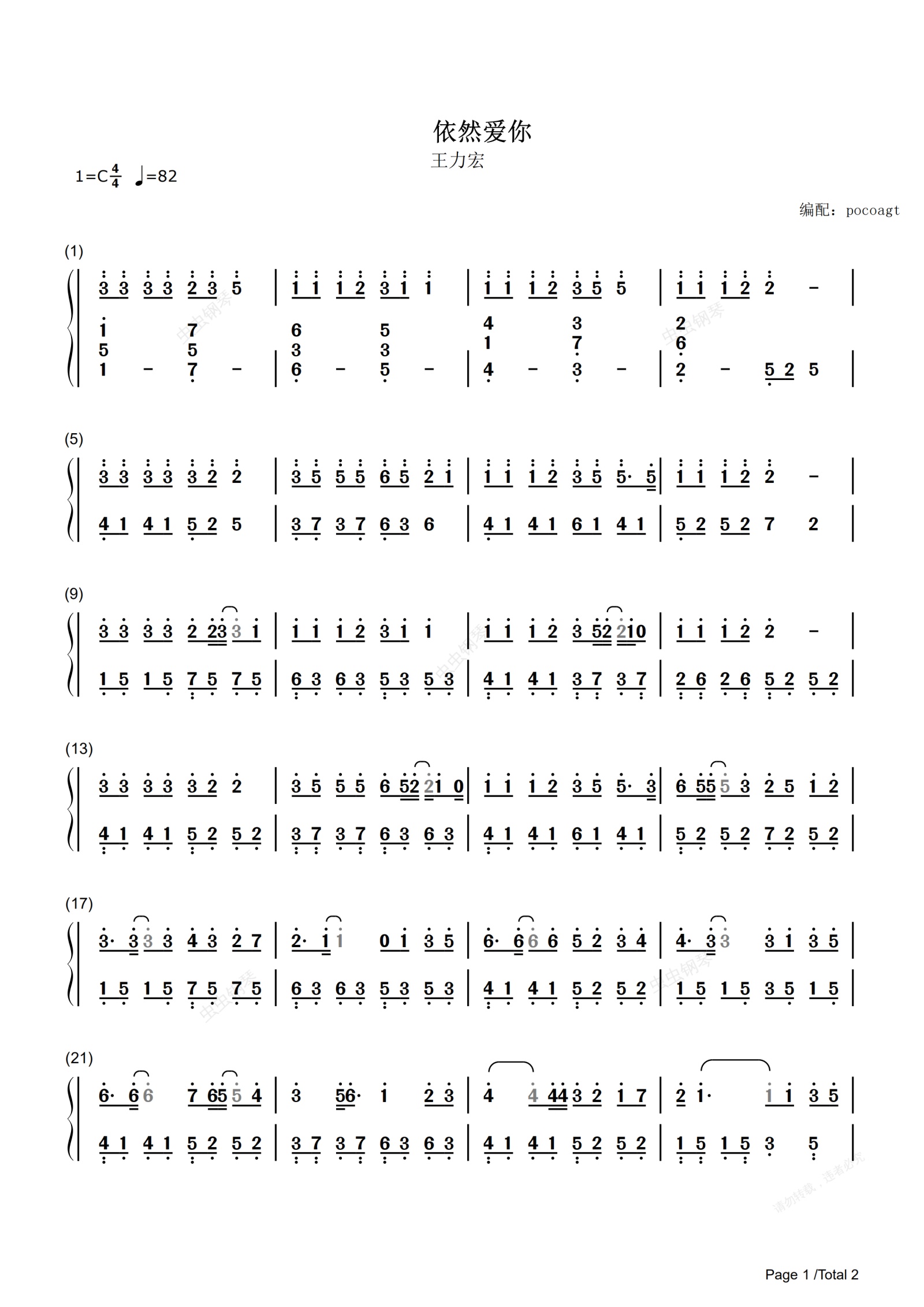 钢琴谱:《依然爱你》简谱初学者优美版(poc编配)