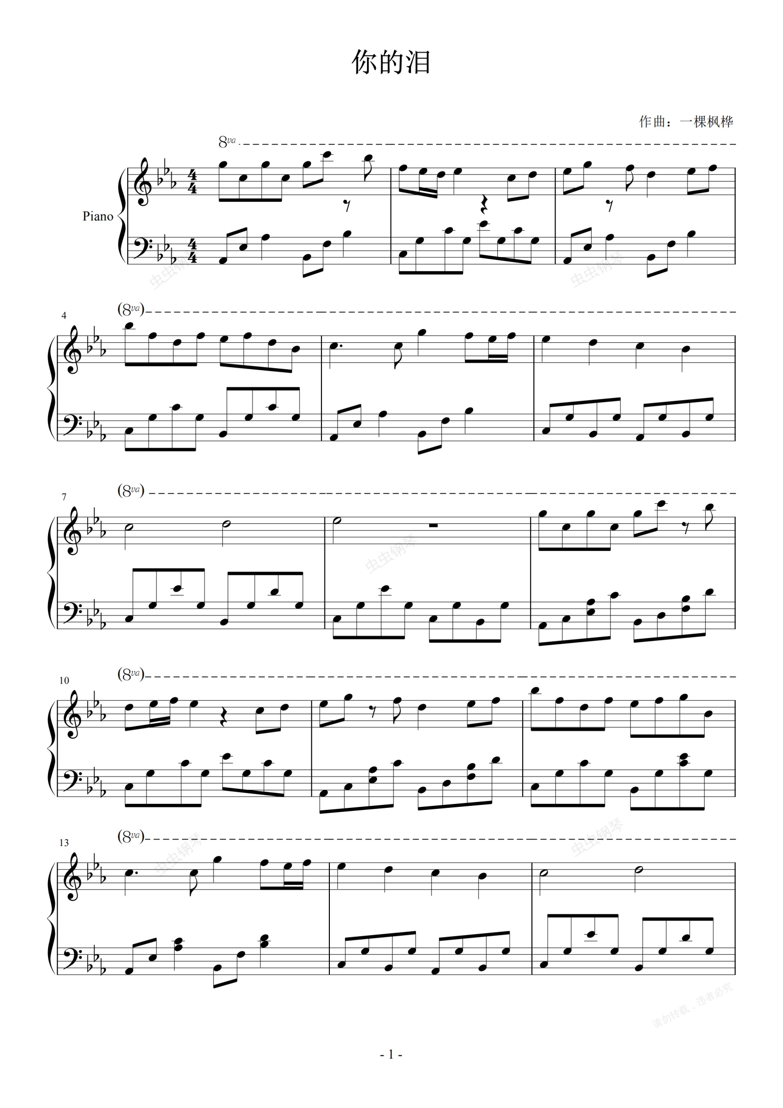 钢琴谱:你的泪