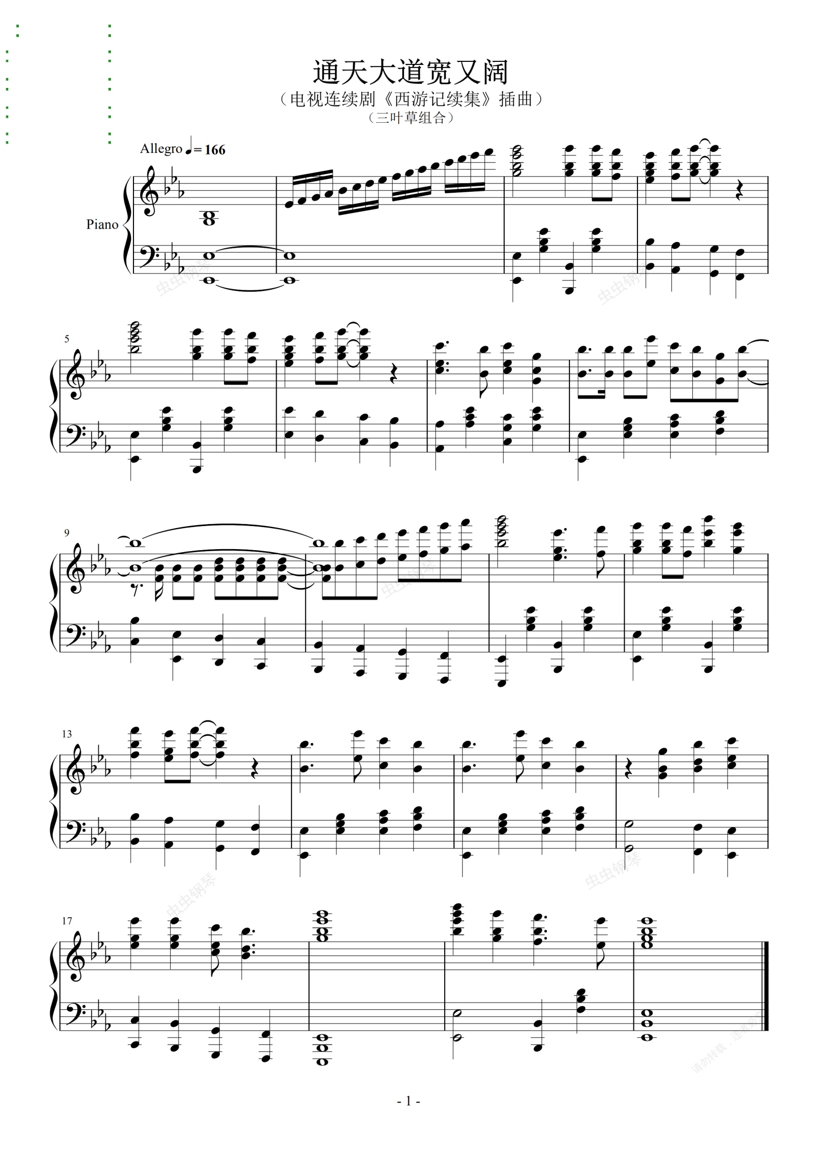 钢琴谱:通天大道宽又阔(《西游记续集》插曲)