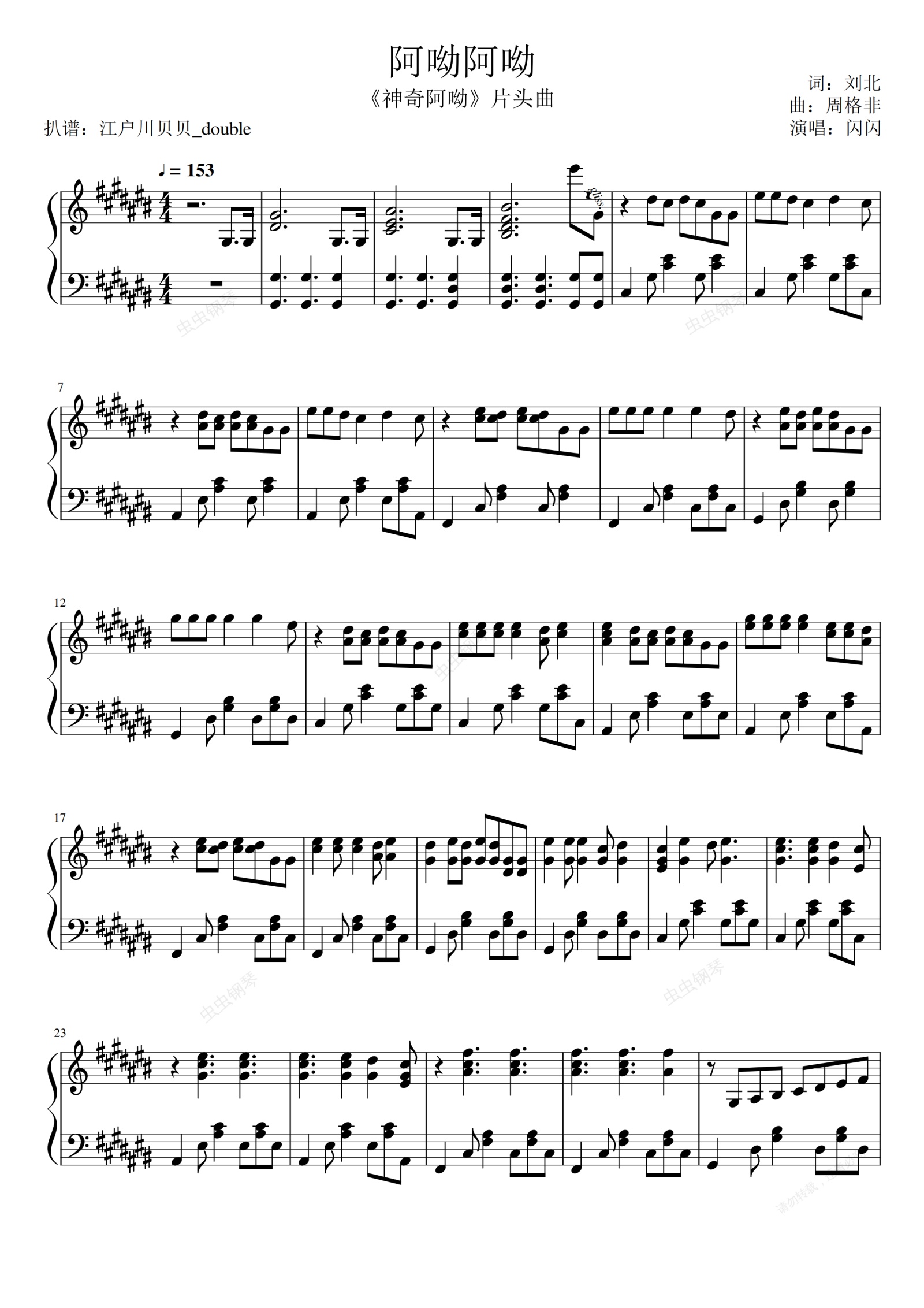 钢琴谱:【神奇阿呦片头曲】《阿呦阿呦》