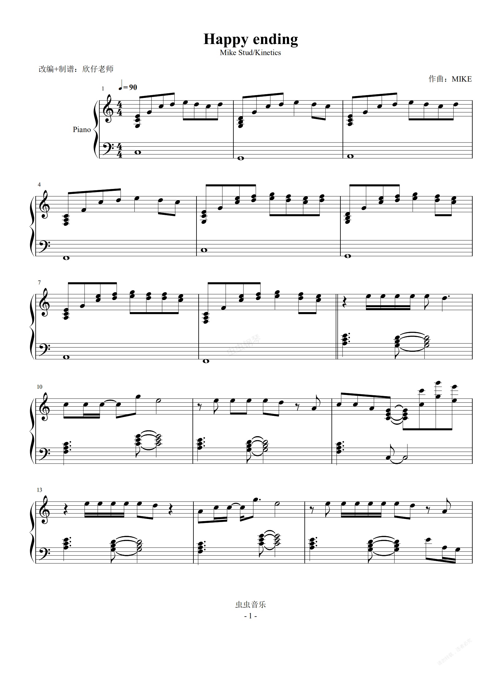 钢琴谱:Happy ending(全新整理重制版)
