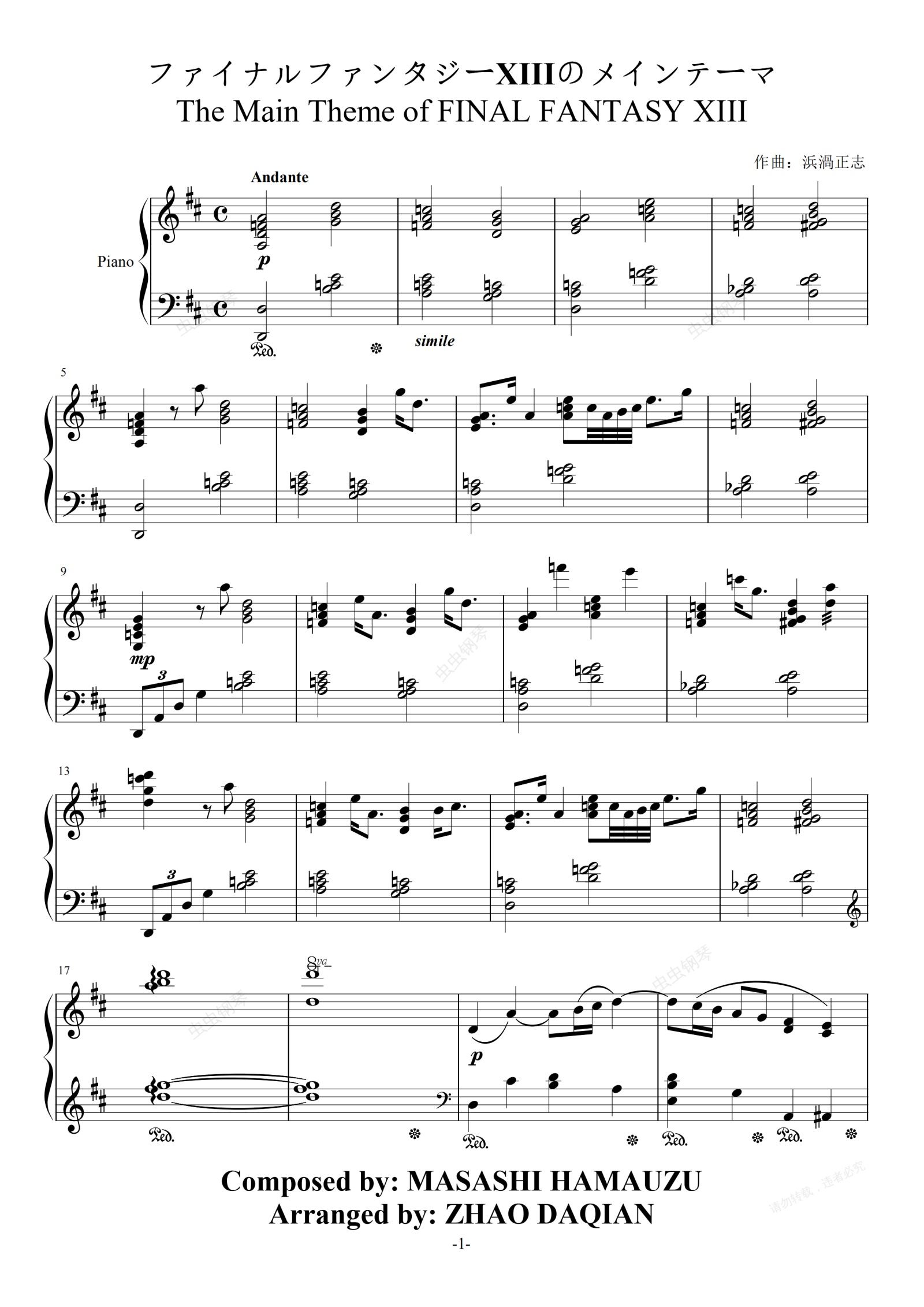 钢琴谱:最终幻想13主题音乐