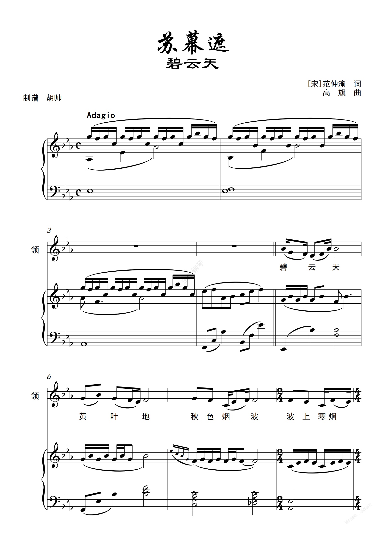钢琴谱:苏幕遮 - 碧云天【李健】