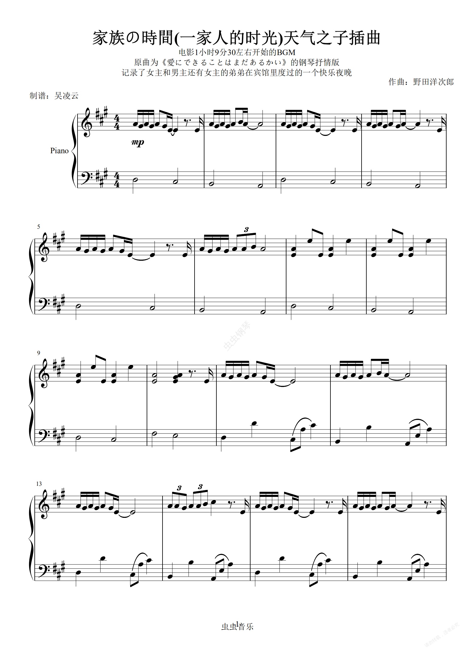 钢琴谱:天气之子BGM插曲 家族の時間(一家人的时光)天気の子 吴凌云制作钢琴版