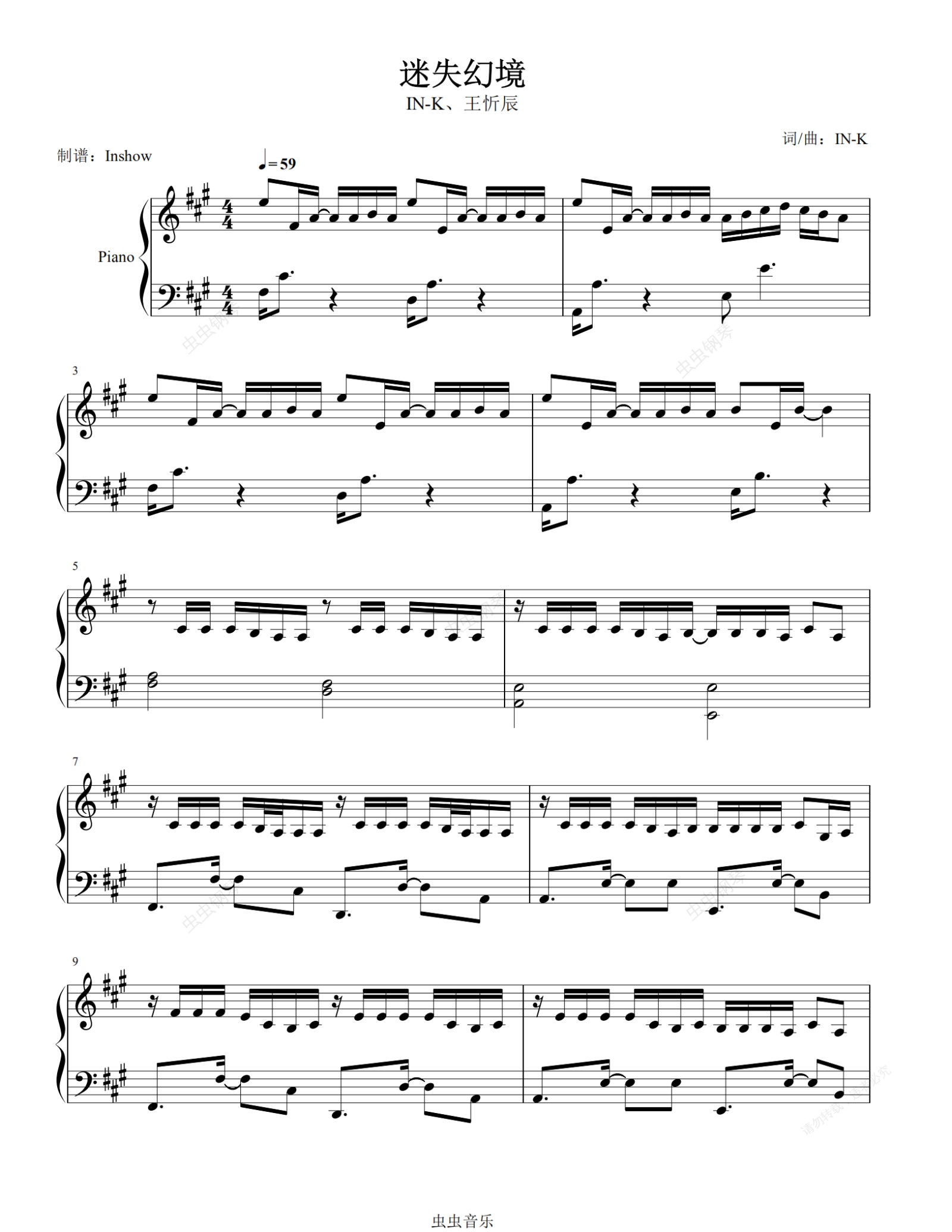 钢琴谱:迷失幻境【独奏】- IN-K、王忻辰