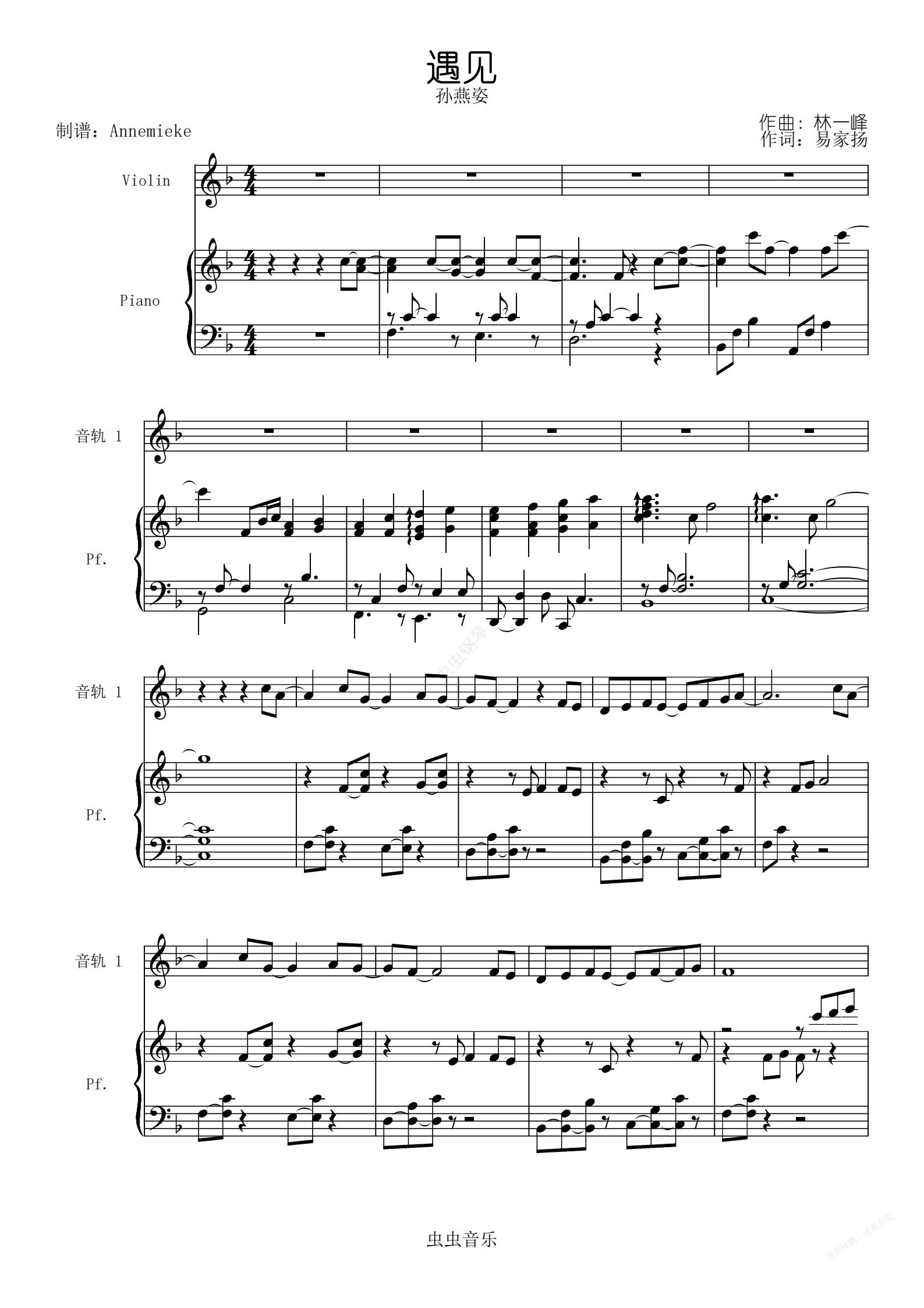 钢琴谱:遇见(F调)男声弹唱伴奏