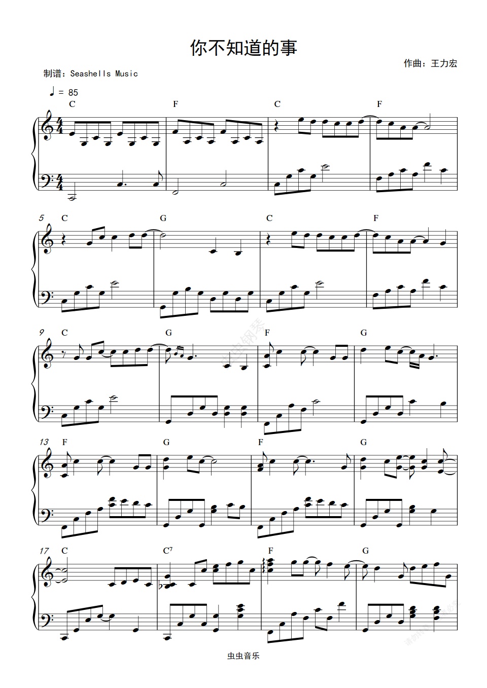 钢琴谱:王力宏-《你不知道的事》精编钢琴独奏