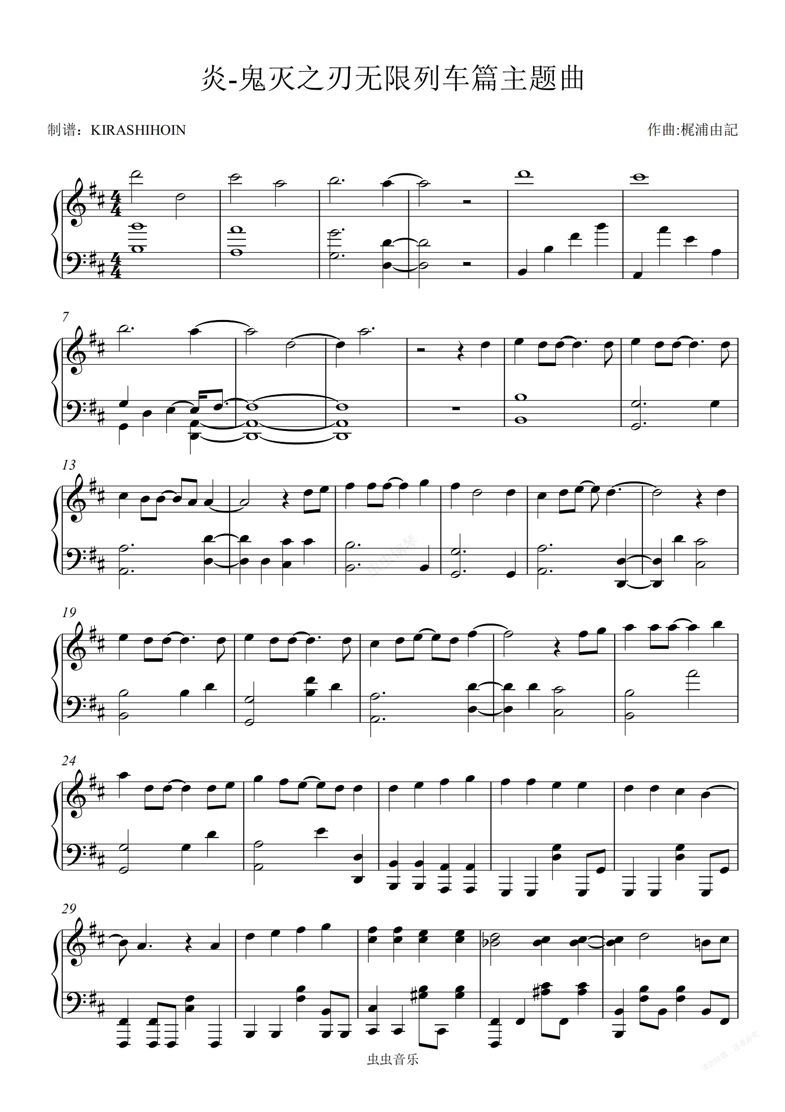 钢琴谱:炎-鬼灭之刃无限列车篇主题曲
