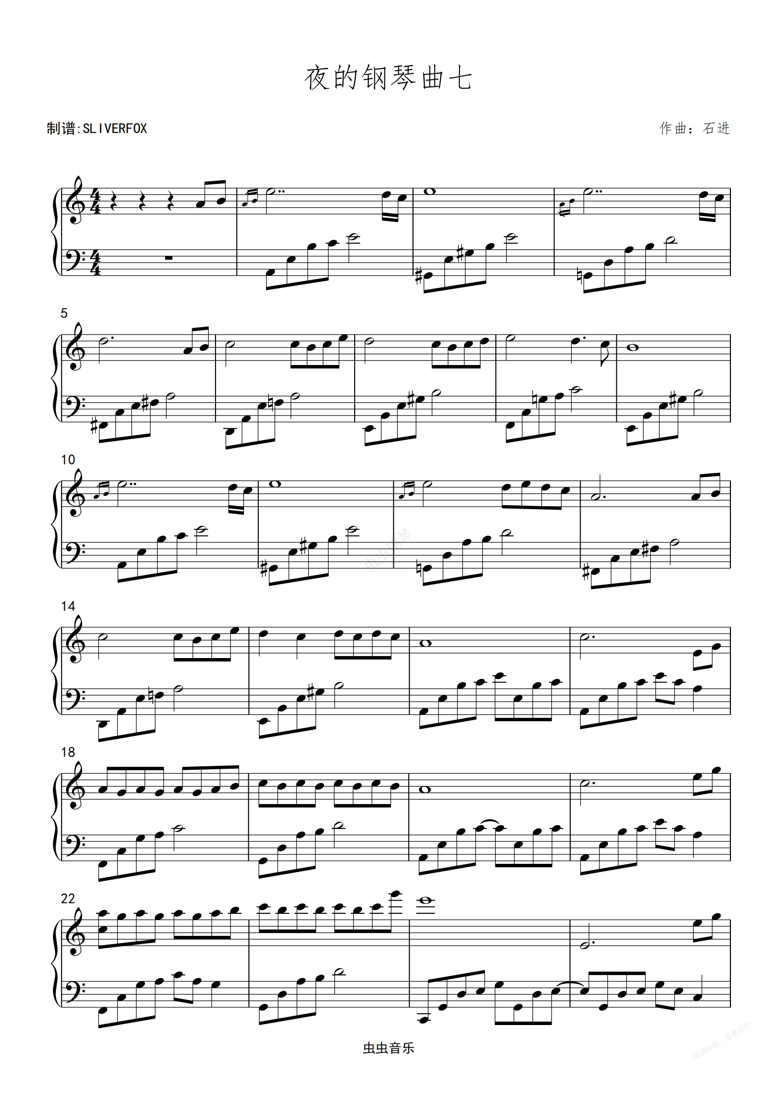 钢琴谱:夜的钢琴曲七(F调)(石进)