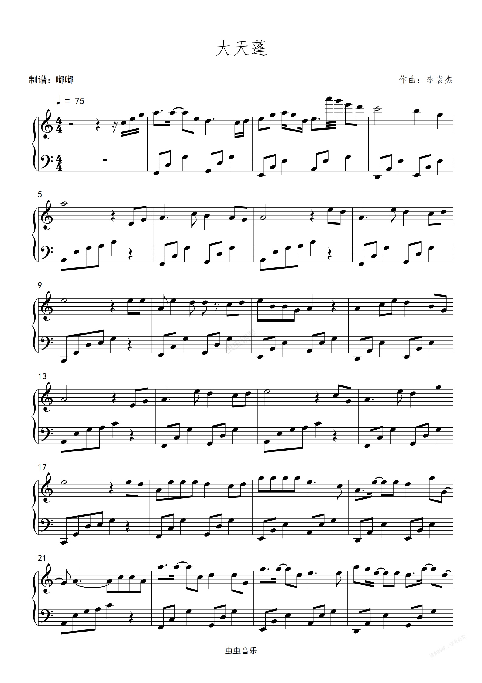钢琴谱:大天蓬 (C调女生版)-清水er