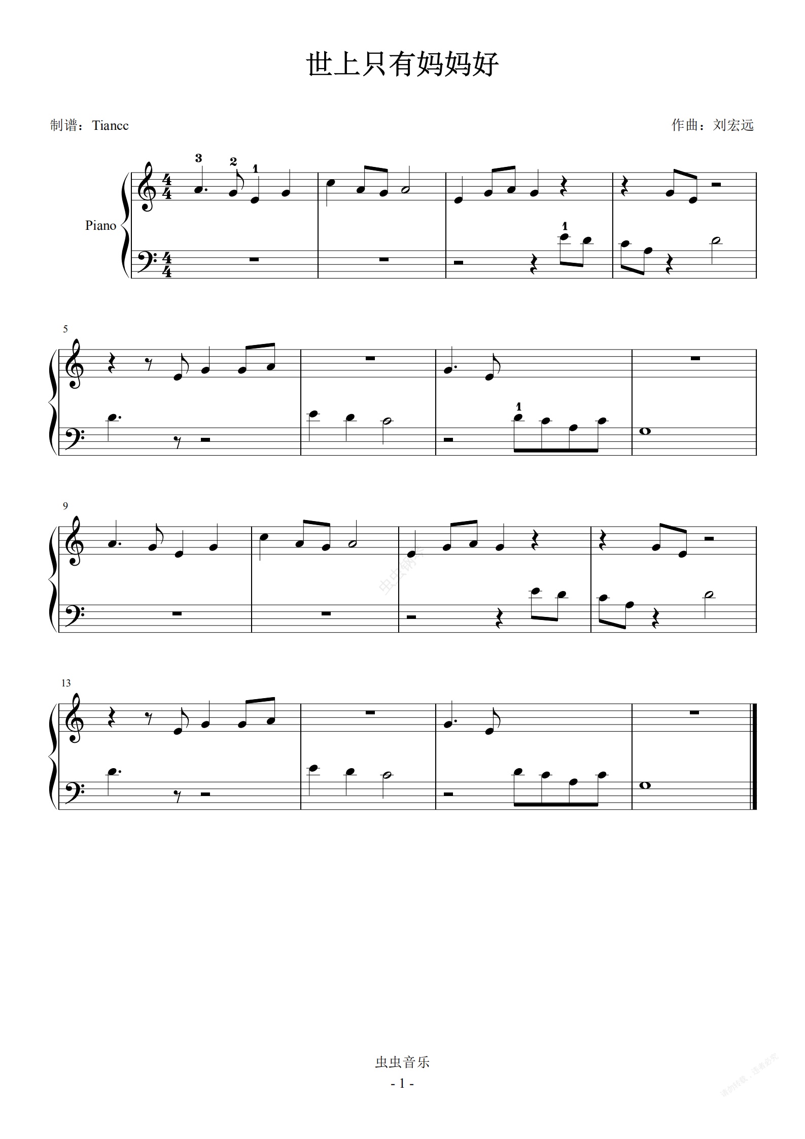 钢琴谱:《世上只有妈妈好》小汤2难度
