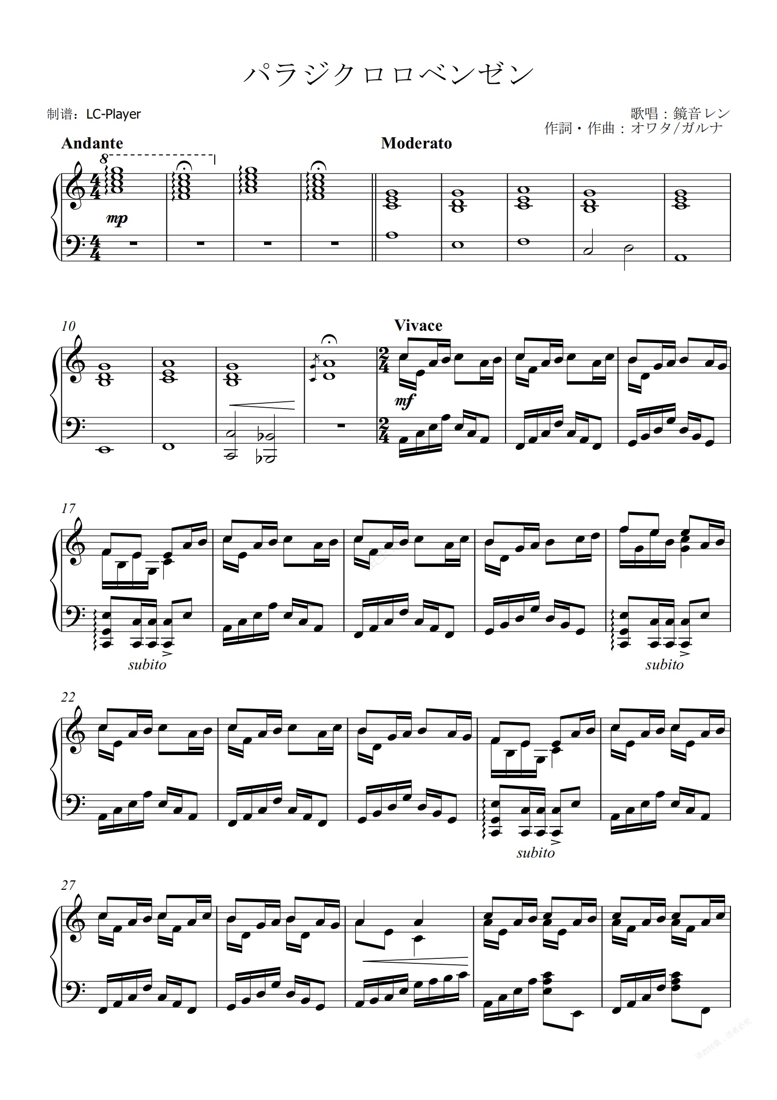 钢琴谱:パラジクロロベンゼン(对二氯苯/Paradichlorobenzene)考古扒谱还原
