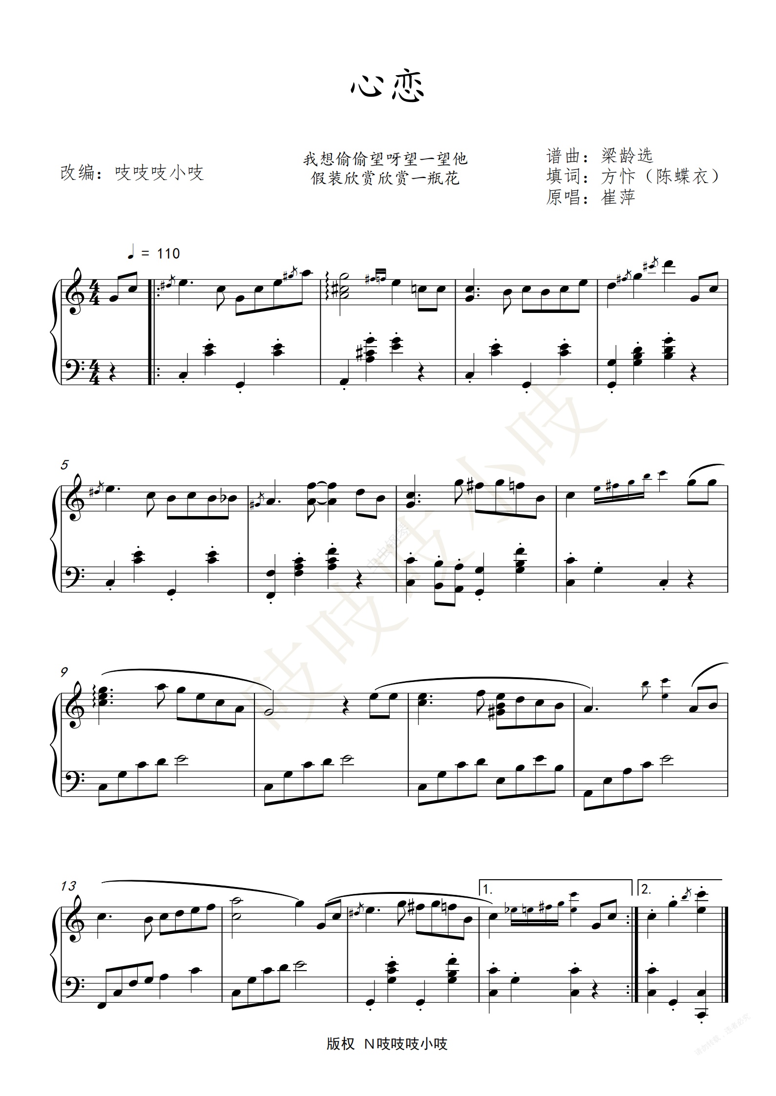 钢琴谱:心恋C调 崔萍 蔡琴 徐小凤 祖海