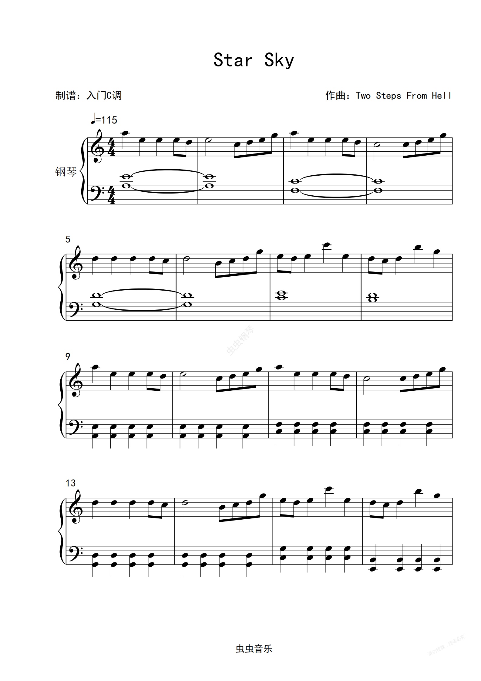 钢琴谱:Two Steps From Hell《star sky》C调简单版
