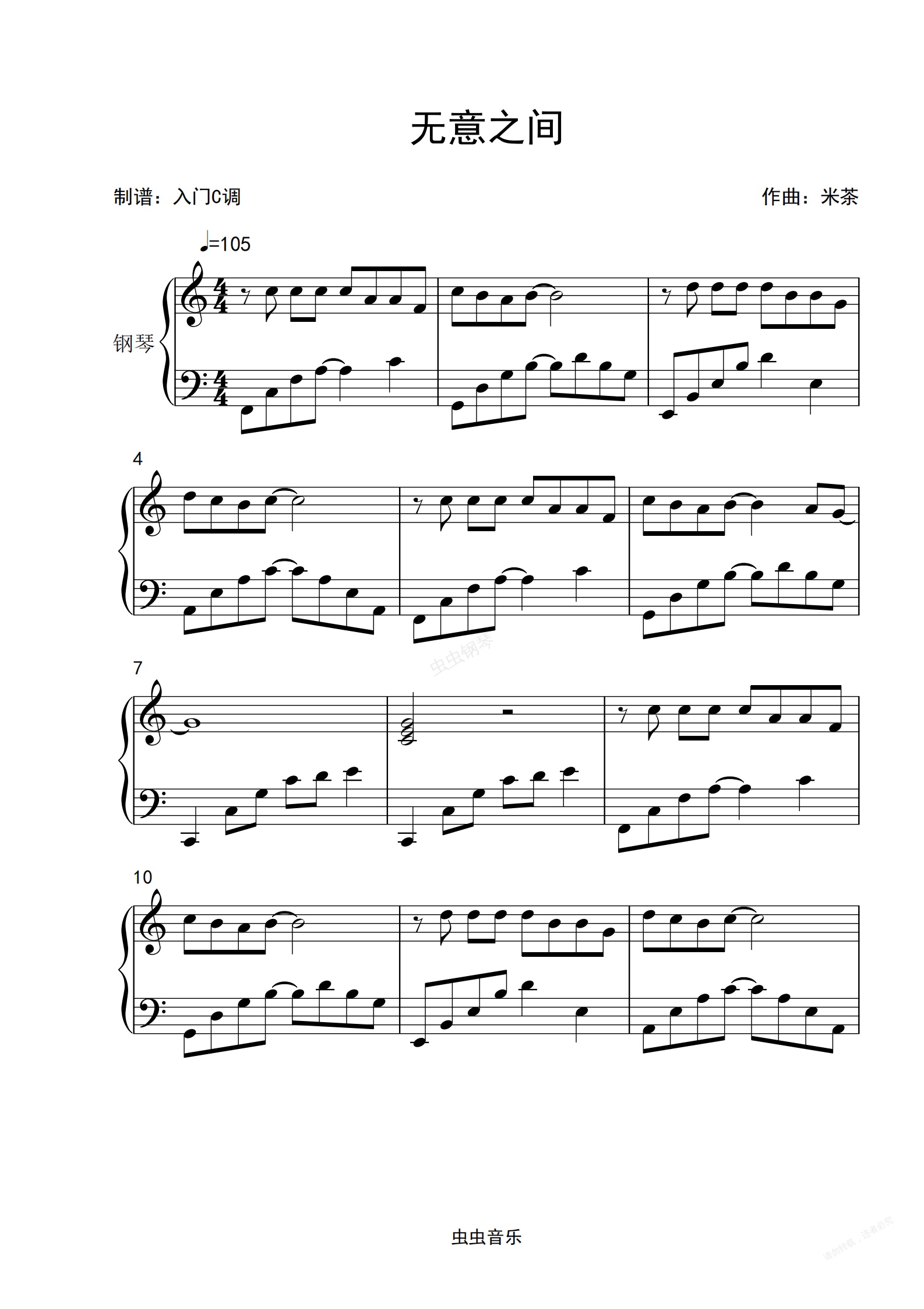 钢琴谱:无意之间(伪装学渣广播剧主题曲)C调简单版