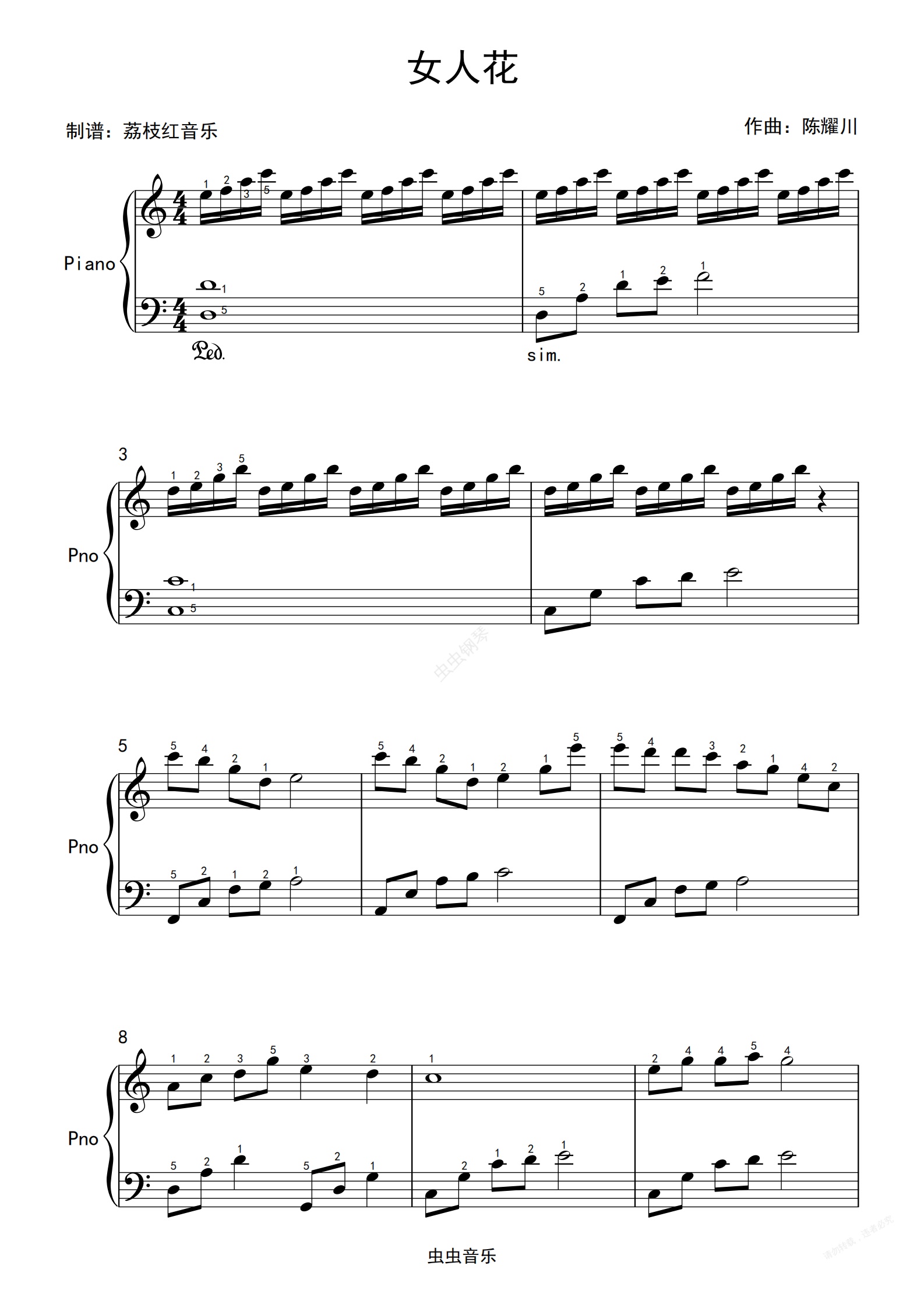 钢琴谱:简单易学 C大调 带指法 女人花 (《意难忘》电视剧插曲)