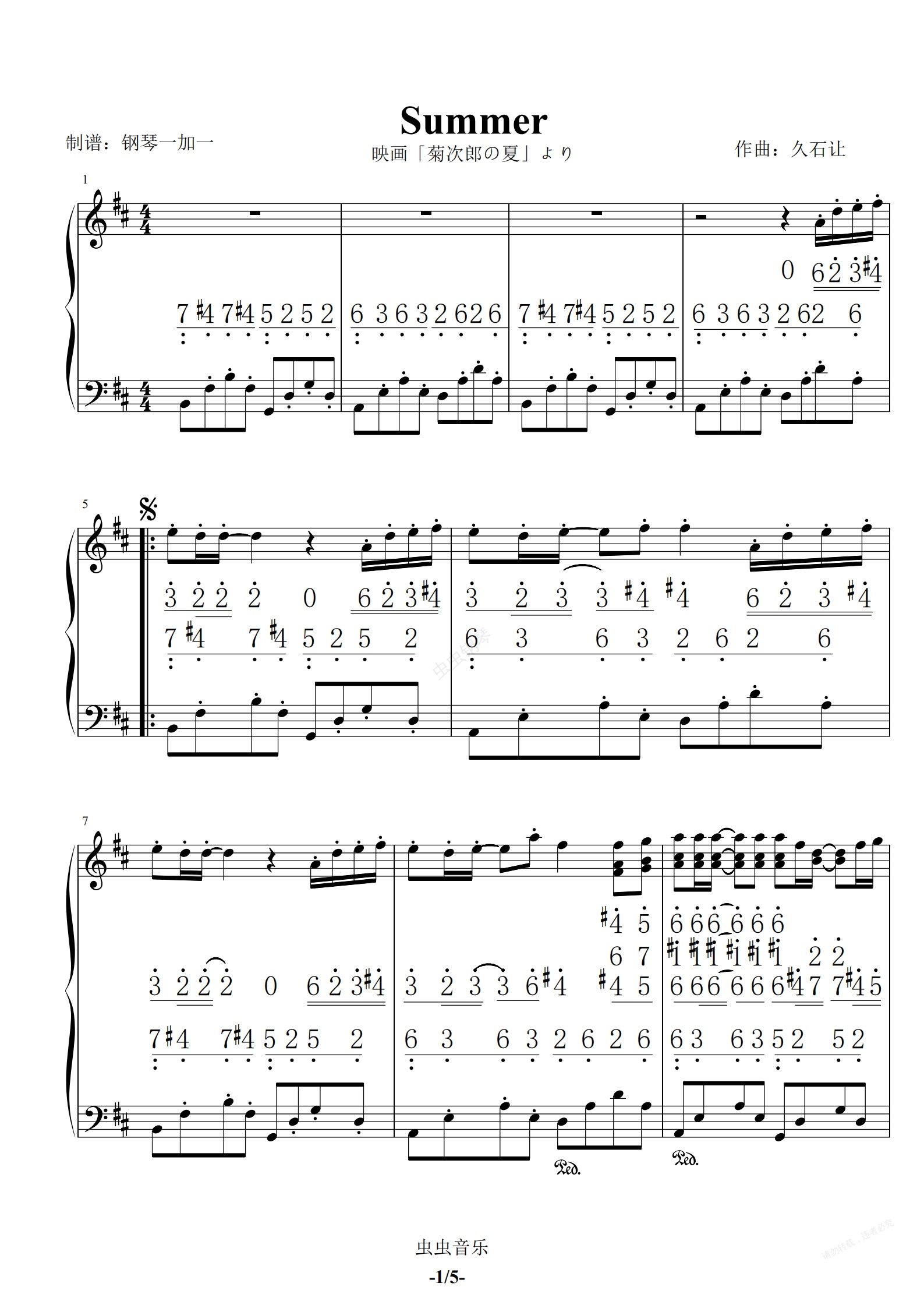 钢琴谱:summer(菊次郎的夏天)双谱完整版