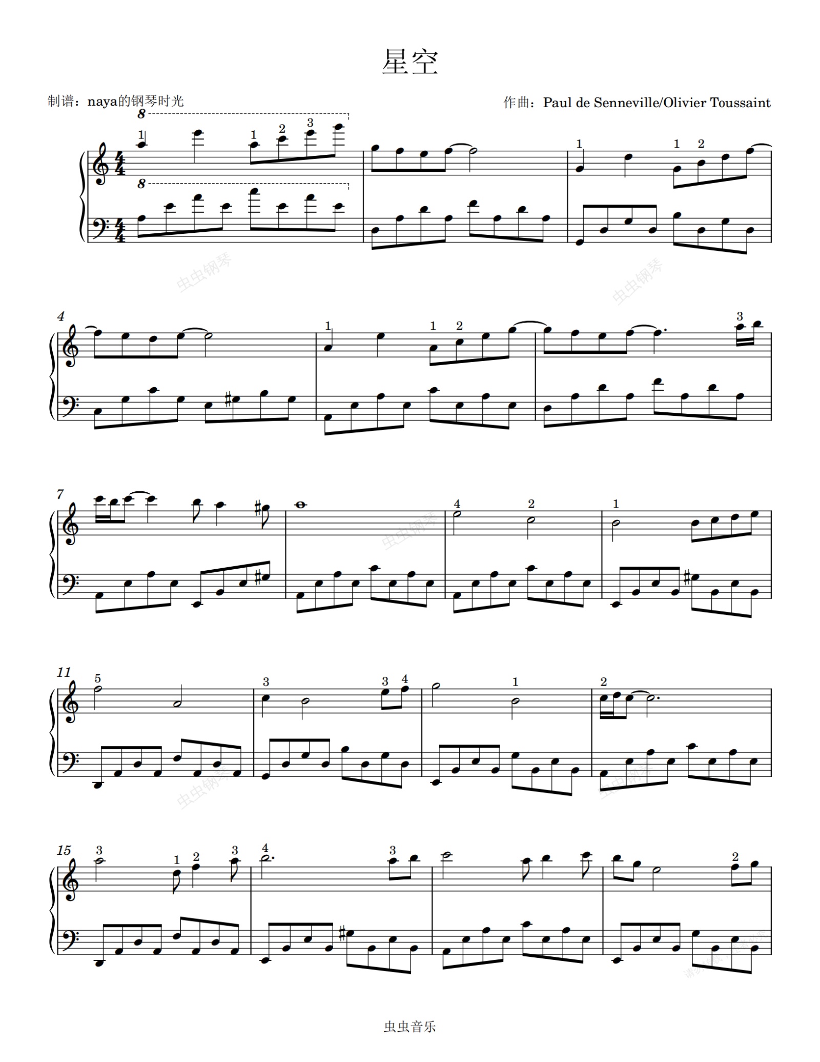 钢琴谱:星空-理查德克莱德曼-C调简单版本
