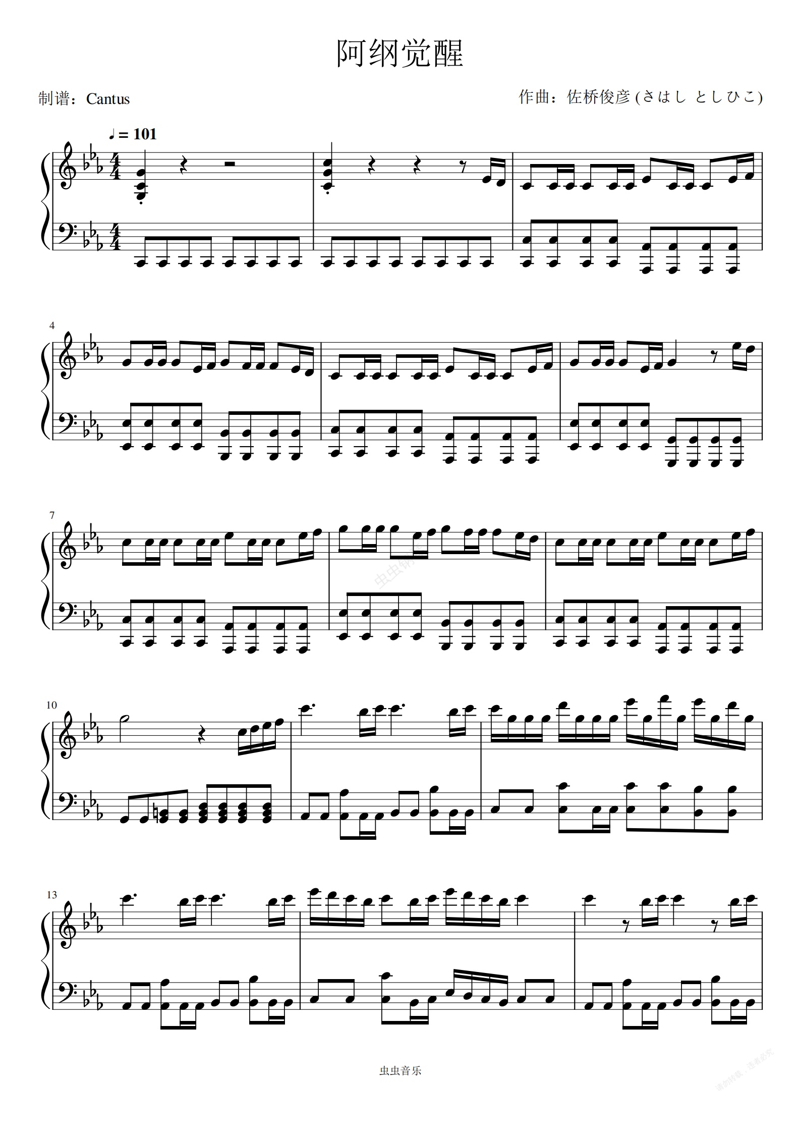 钢琴谱:ツナ覚醒 (阿纲觉醒) (电视动画《家庭教师》插曲)