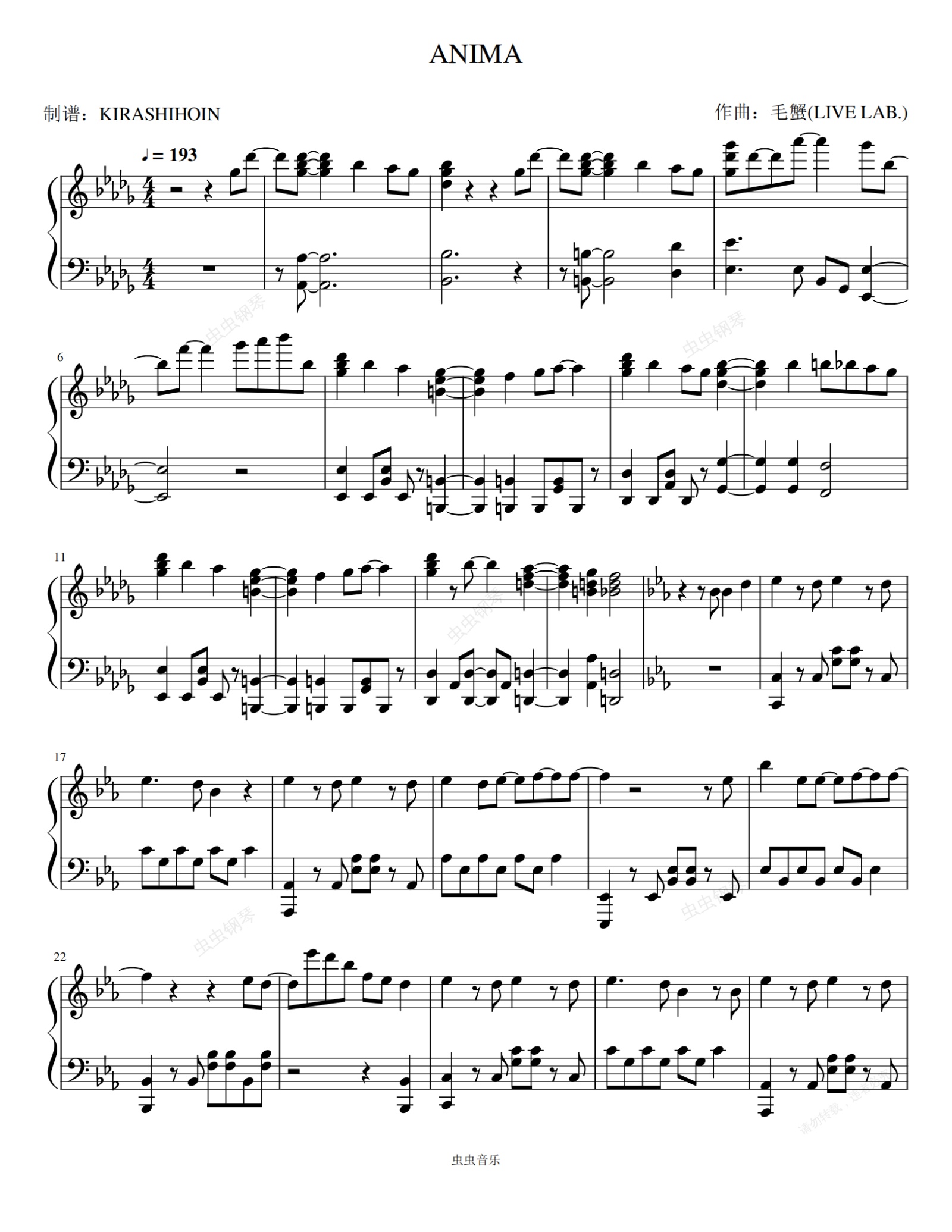 钢琴谱:ANIMA(《刀剑神域 Ⅲ》TV动画片头曲)