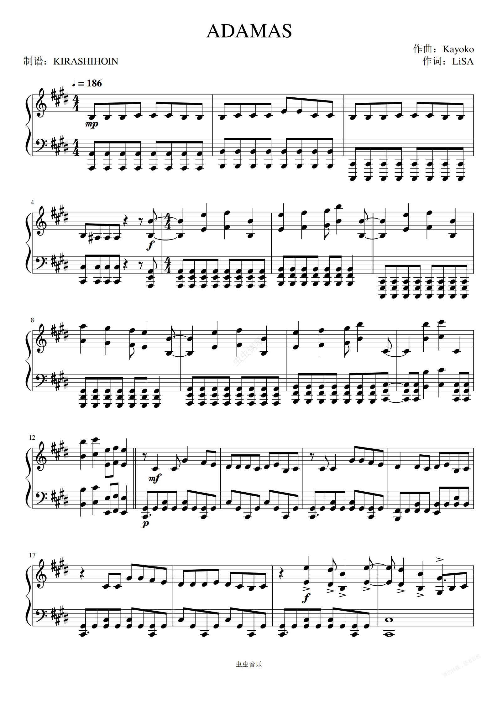 钢琴谱:ADAMAS (《刀剑神域 Ⅲ》OP)