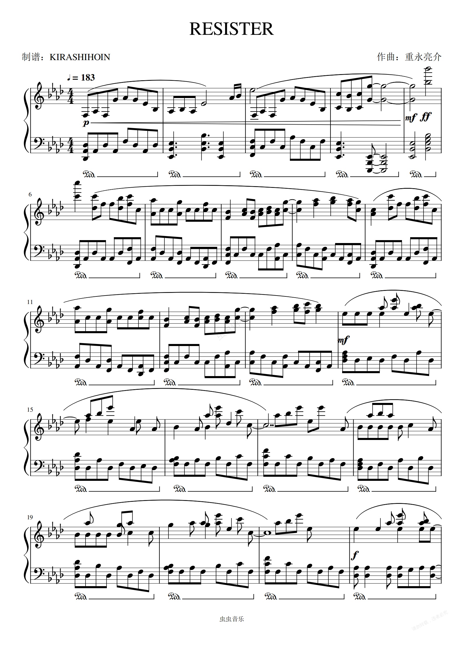 钢琴谱:RESISTER(《刀剑神域 Ⅲ》OP)