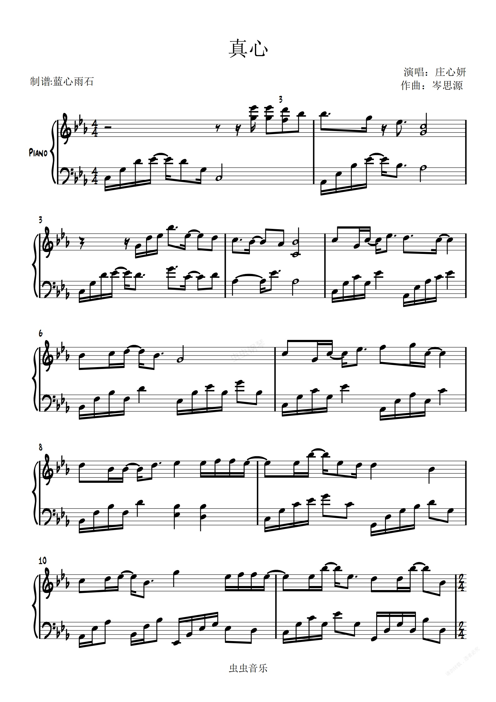 钢琴谱:真心 (《将夜》影视剧插曲)