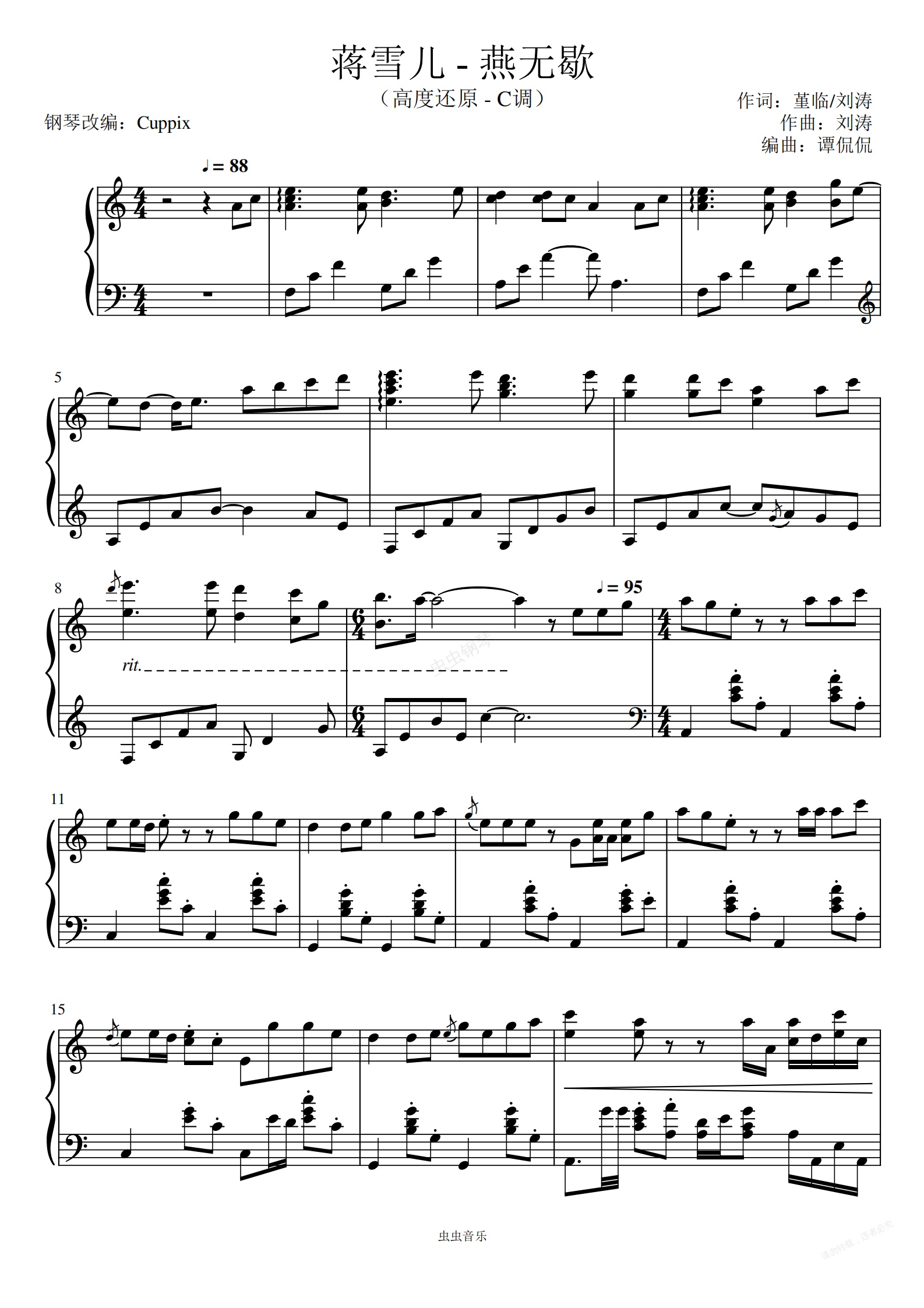 钢琴谱:蒋雪儿《燕无歇》高度还原-C调(Cuppix改编)