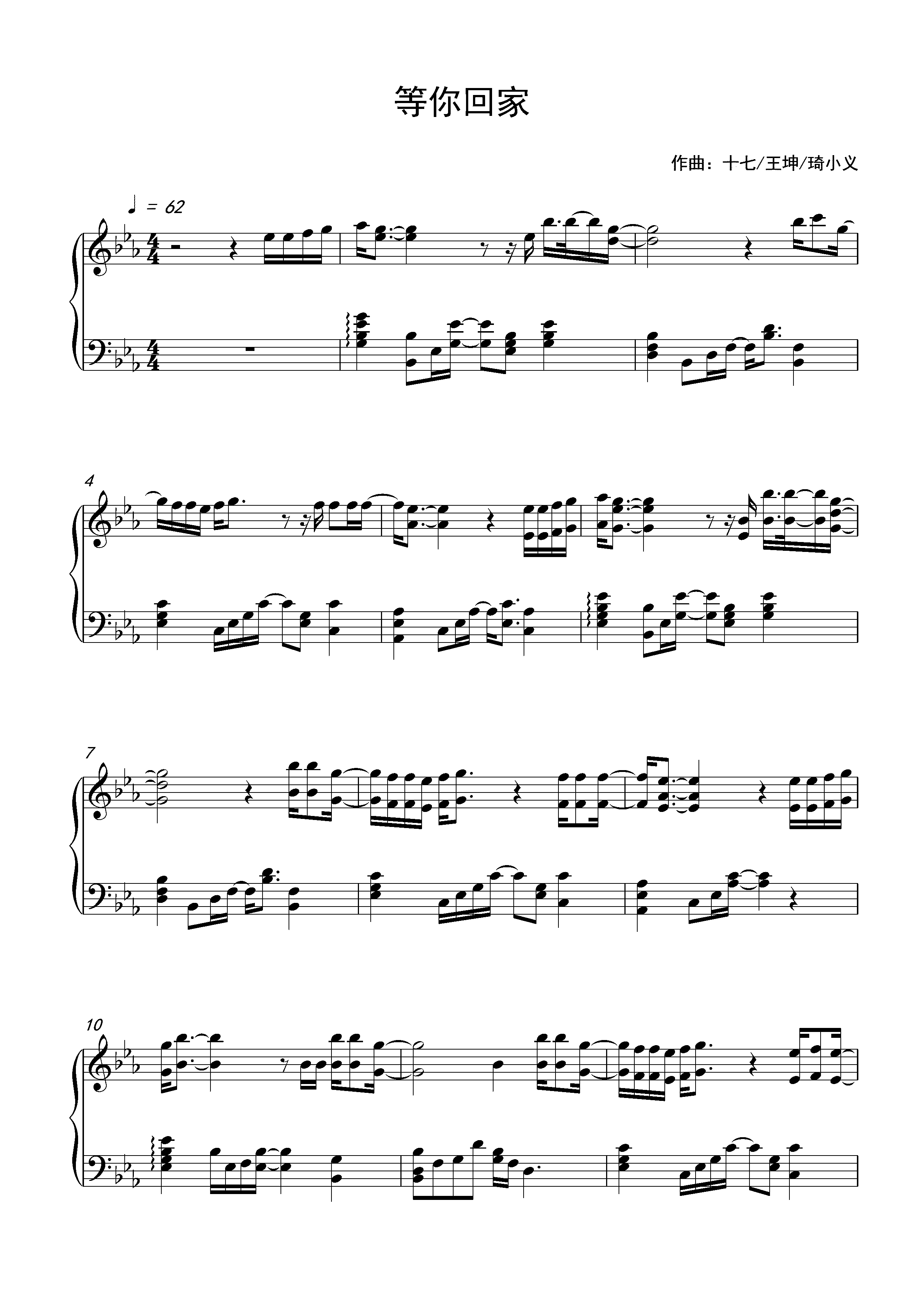 钢琴谱:等你回家(武汉抗疫公益歌曲)