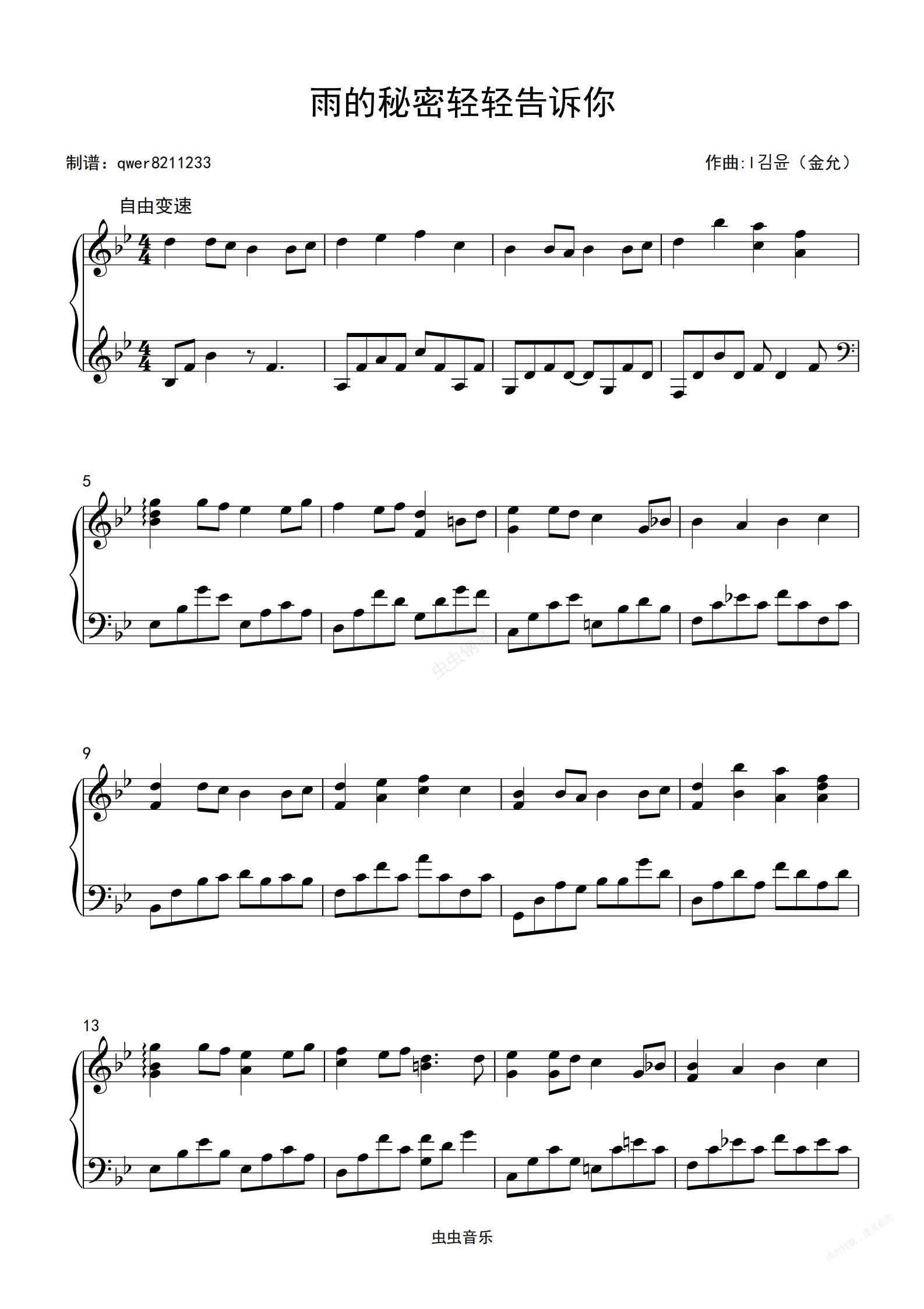 钢琴谱:김윤(金允)《Raindrops》(雨的秘密轻轻告诉你)