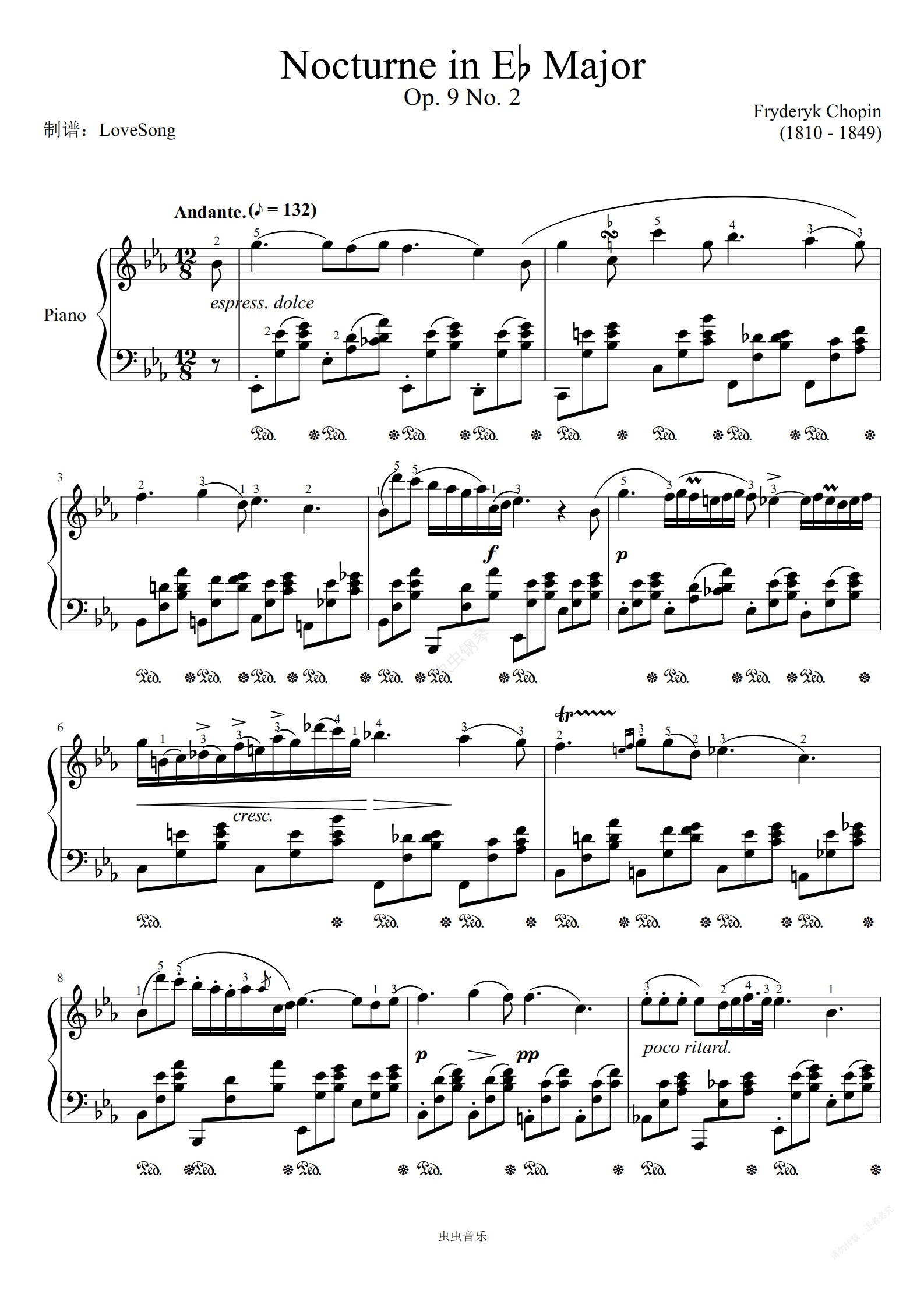 钢琴谱:肖邦 降E大调夜曲 高清原版 带指法踏板 精校版