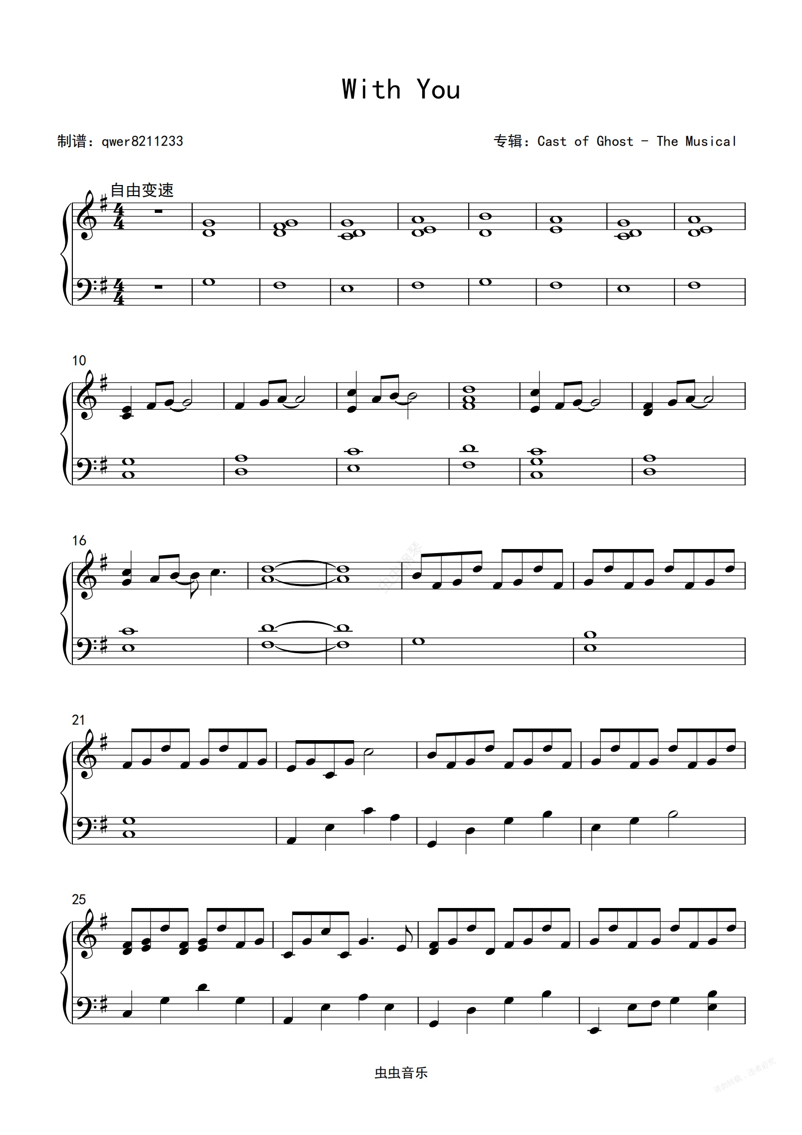 钢琴谱:With You