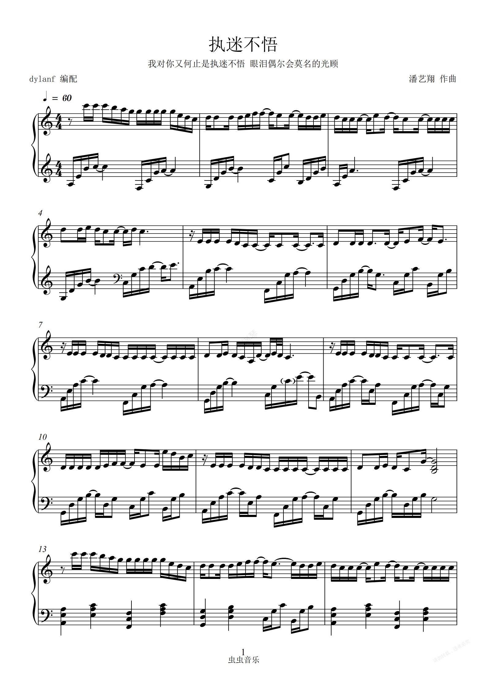 钢琴谱:C调易弹 执迷不悟 小乐哥 好听还原
