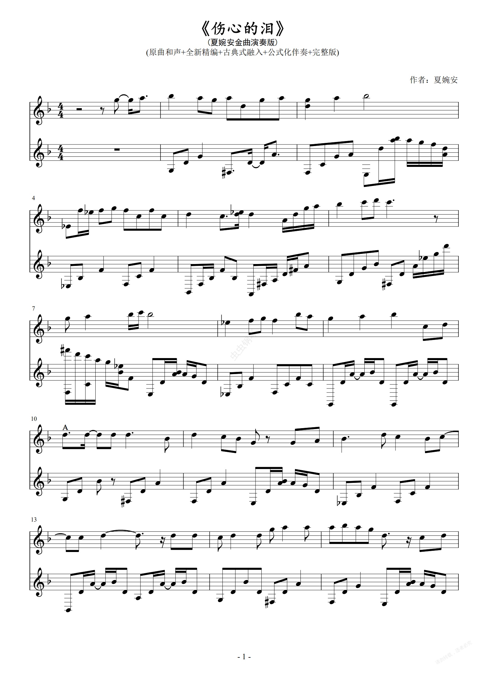 钢琴谱:夏婉安-精选曲-《伤心的泪》-(原曲和声+全新精编+古典式融入+公式化伴奏+完整版)