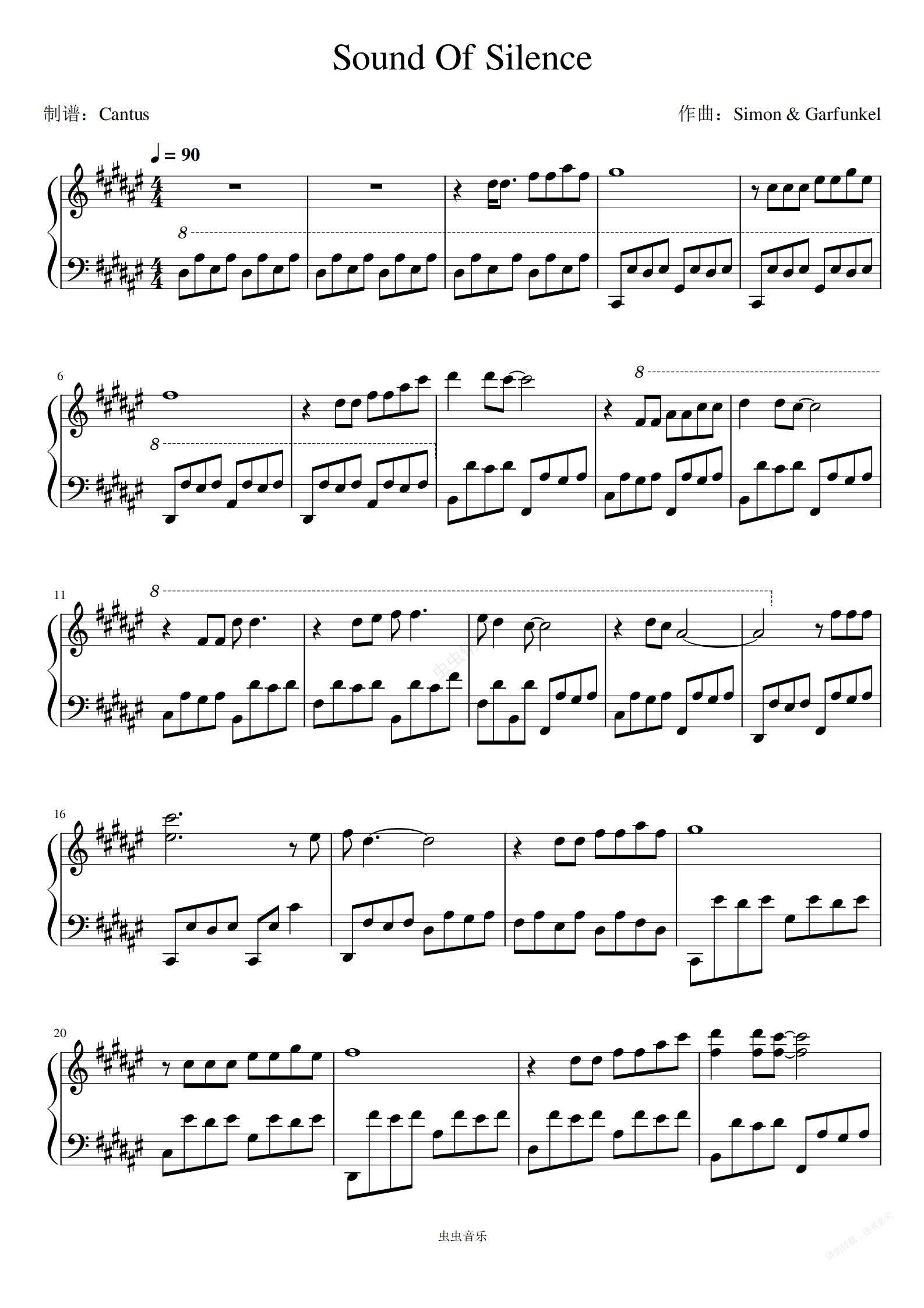 钢琴谱:Sound Of Silence-寂静之声