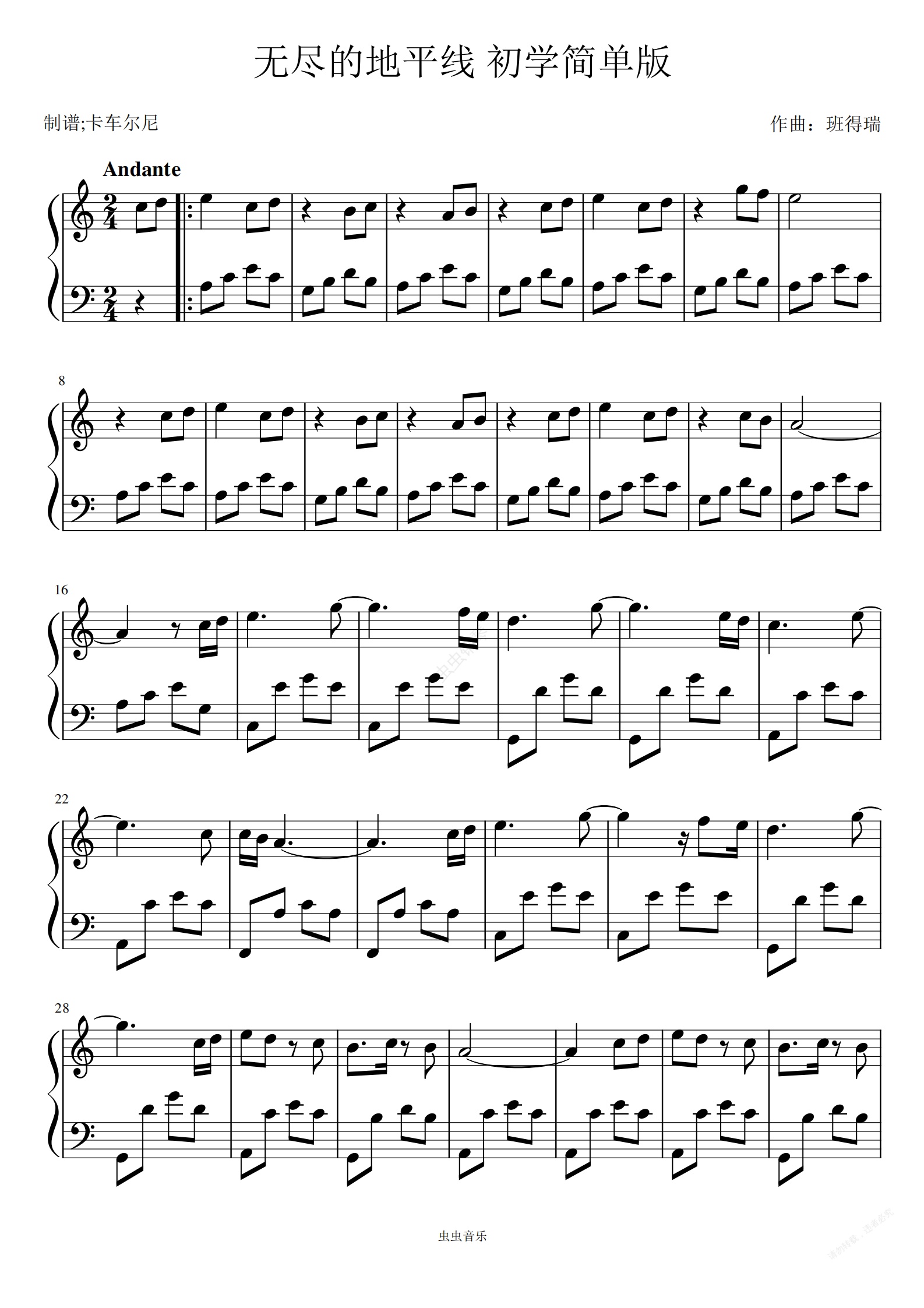 钢琴谱:无尽地平线 (Endless Horizon) 无升降号初学超简单版