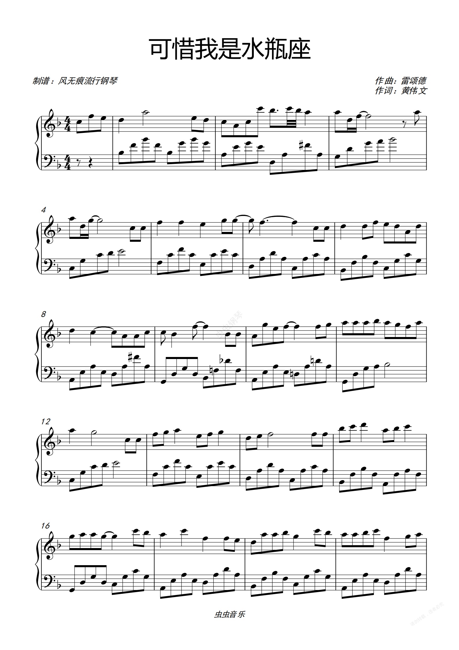 钢琴谱:可惜我是水瓶座-杨千嬅〖简易动听〗